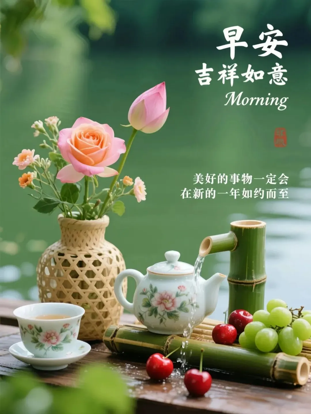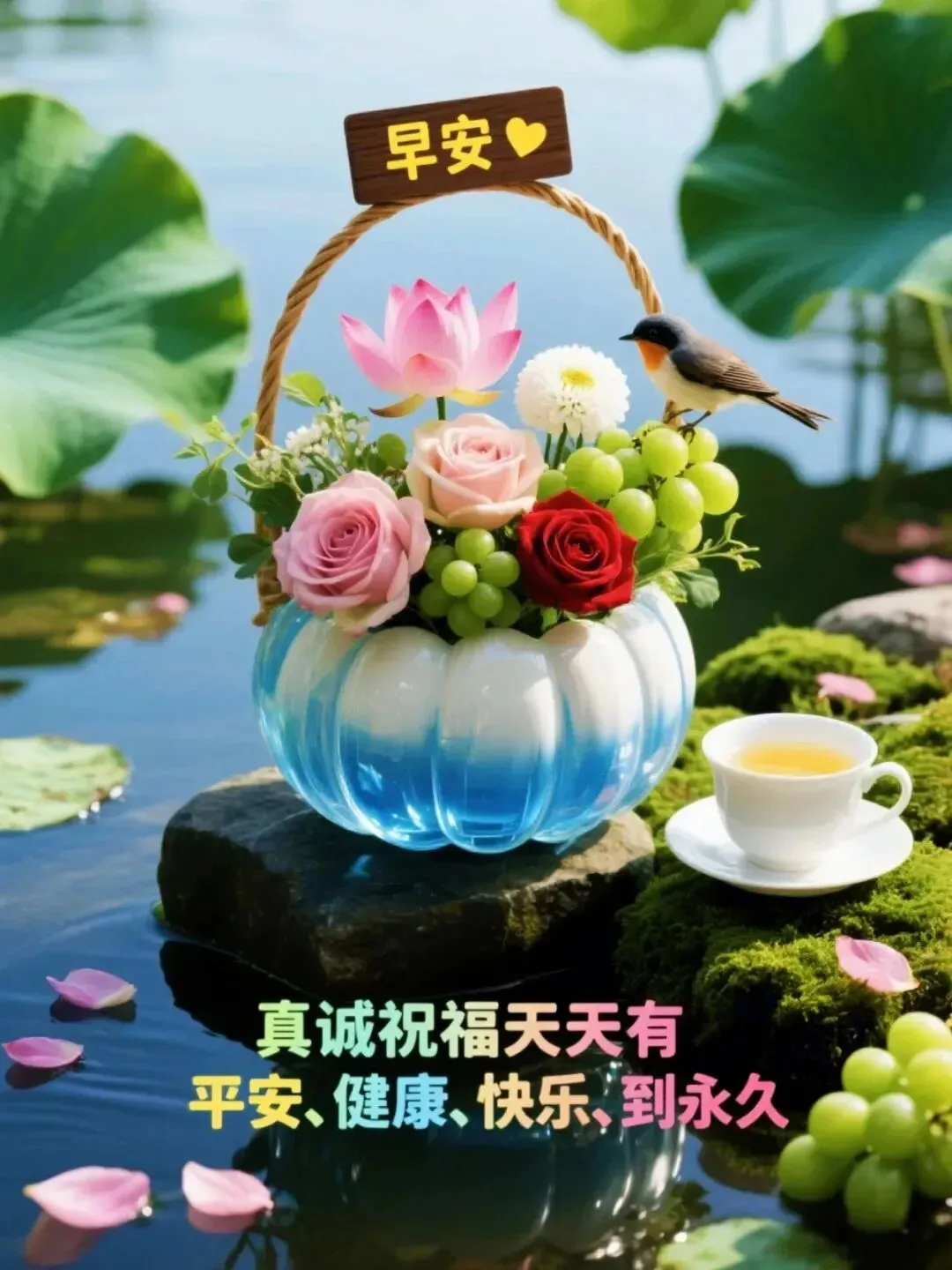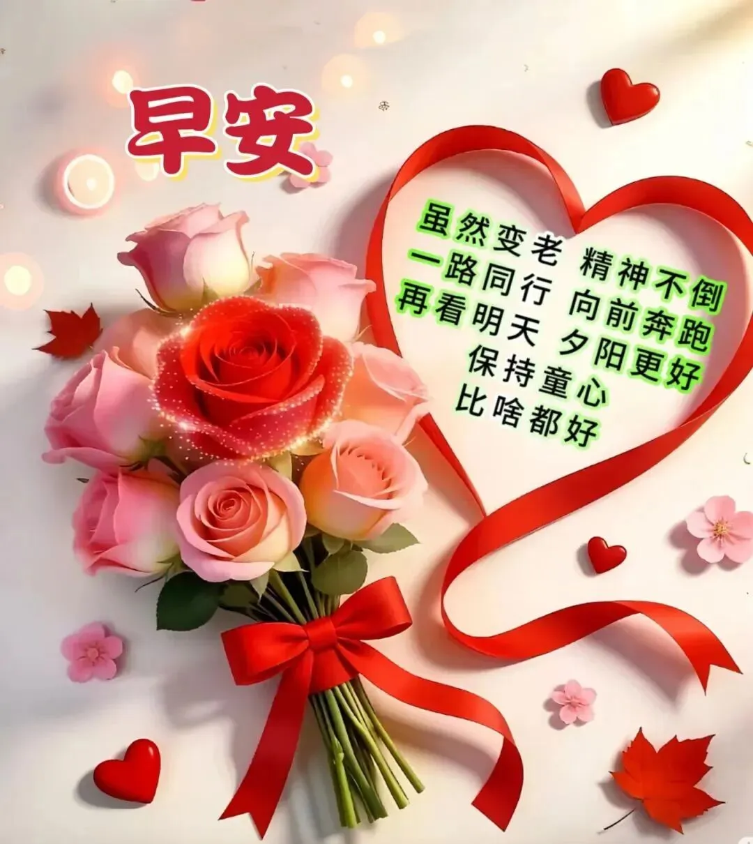 ☀静心思良友,问候在清晨。💝日子糊涂过,世界天天新。💐万物皆下品,唯有健康真。🍓潇洒度人生,越活越年轻。🌸清晨安好,吉祥如意!🌈