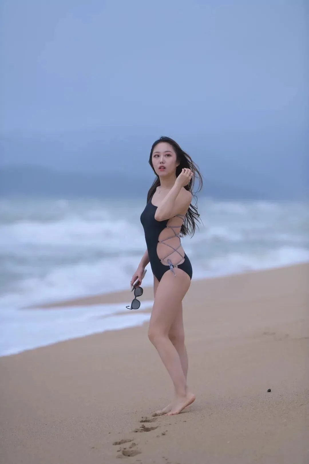 黑色泳衣的她,让三亚的海滩多了一种颜色——心动色。