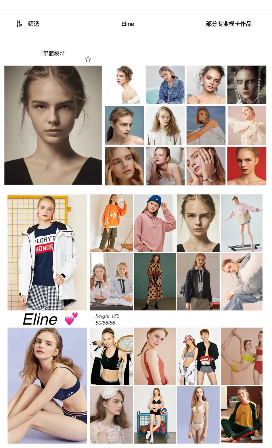 如果Eline的风格适合您的角色,可以拿模特的模卡来问档期,如需查看更多模特或演员,可以找我们经纪人,他会根据你的需求发送模特资料给你哦。