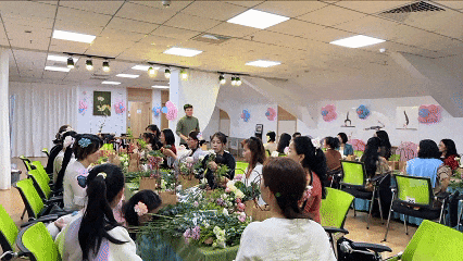 活动现场,专业花艺老师手把手教学,每一个插花技巧都讲解得细致入微,即便零基础、担心自己是“手残党”的女神姐姐们,也能轻松跟上节奏。