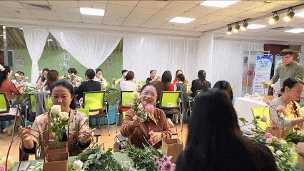 大家从一开始的手忙脚乱,慢慢变得熟练上手,用心挑选花材、搭配造型,每一束亲手制作的花束,都是独一无二的专属纪念。
