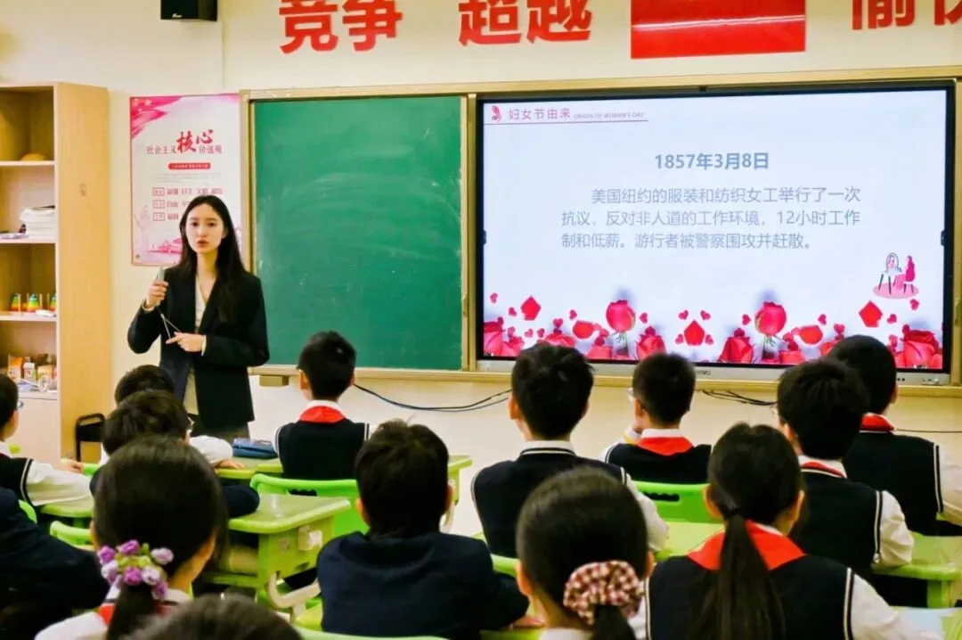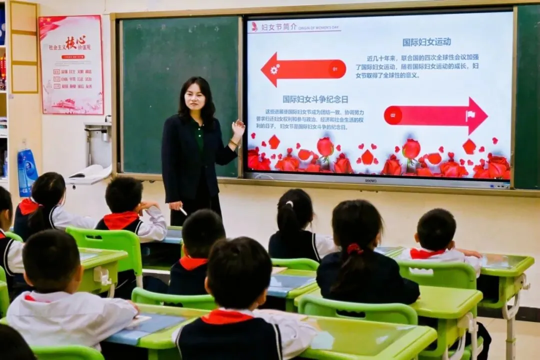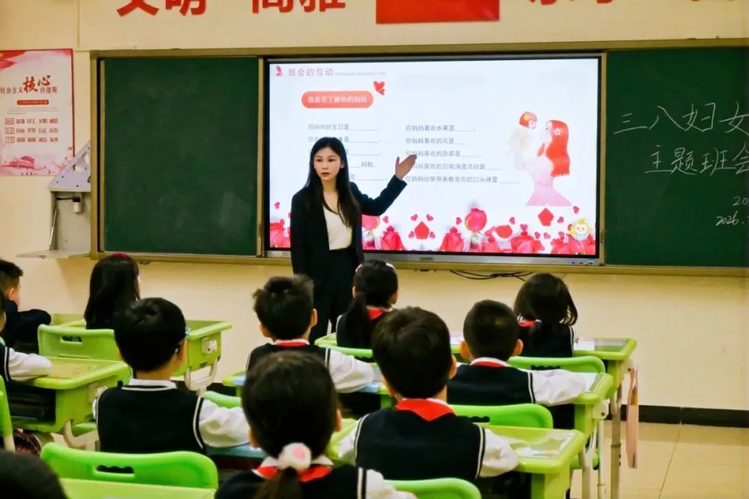 周一,一场名为《庆祝三八妇女节——致敬她力量》的主题班会悄然展开。老师们讲述了妇女节的由来,让孩子们明白,这个节日不仅仅是鲜花与礼物,更是对女性尊重与感恩的象征。通过分享那些藏在日常琐碎里的母爱故事,引导孩子们思考:在这个节日里,除了送贺卡,我们还能为妈妈做什么?是洗一次碗,还是捶一次背,亦或是做一道菜?教育,就在这润物细无声的引导中生根发芽。