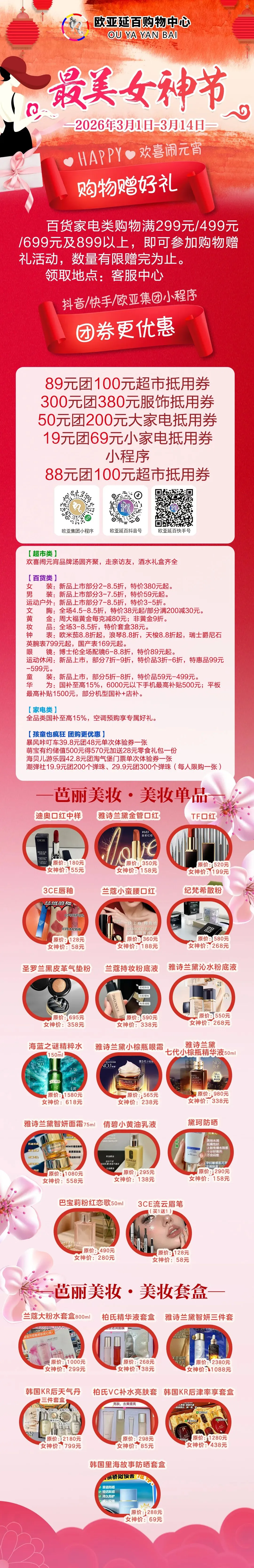 当前位置:首页>美女资讯>【欧亚延百】珲春欧亚延百购物中心祝您女神节快乐!!!