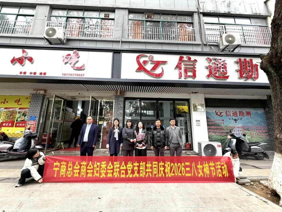 3月6日宁商总会商会副会长曾新文、曾绍潮负责。举办“妇委会联合党支部共同庆祝2026三八女神节活动”。副会长李上南代表周月、宋小龙。理事余志平。会员张丽频、魏雅玉、宋青华、刘满秀、罗正贤、王海、连辉、包骏、邓三保、刘上海。副秘书长刘荣生。秘书处张婷婷等30余位参加活动。
