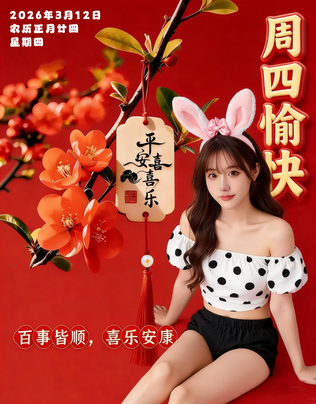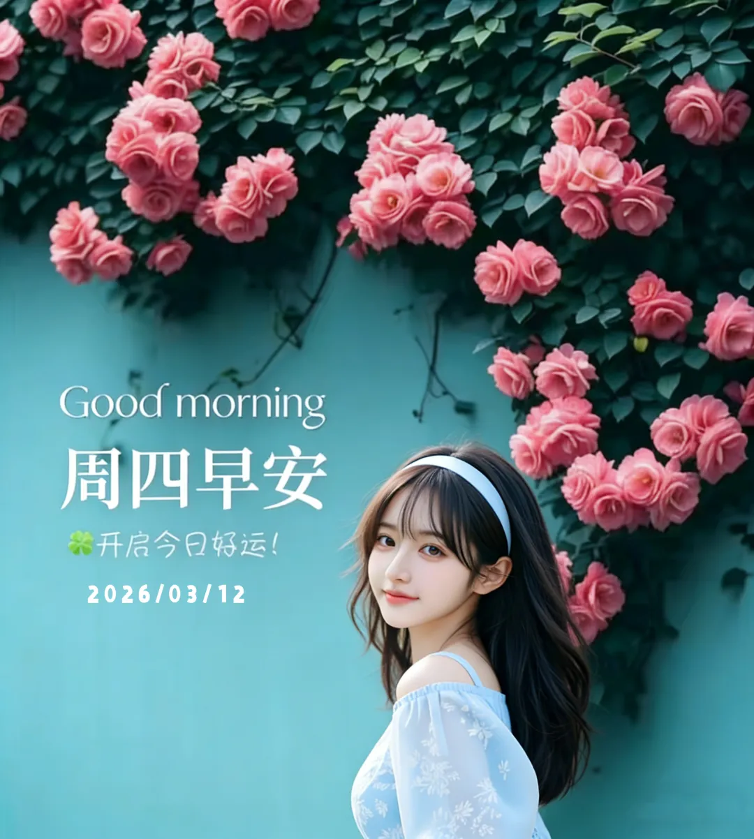 当前位置:首页>美女资讯>3月12日-周四美丽图片祝福语+起床迎曙光,问候送吉祥,开窗接百福,通风送安康