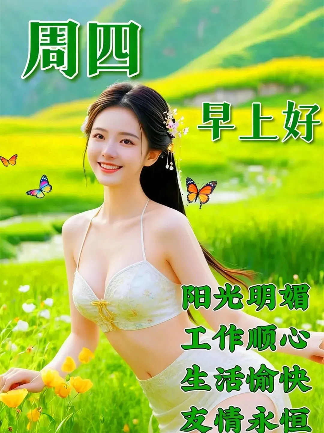 记住的笑容就是最好的牵挂,收到的问候就是最好的礼物,虽然岁月不会轮回,天真不再重现,希望一条小小的问候,一份简单的祝福,能让你今天过得开心,周四早上好!