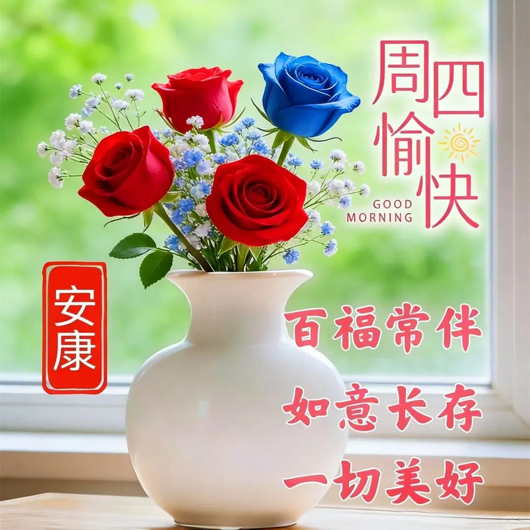 起床迎曙光,问候送吉祥,开窗接百福,通风送安康!愿我们永远开心,快乐,健康,周四早上好!
