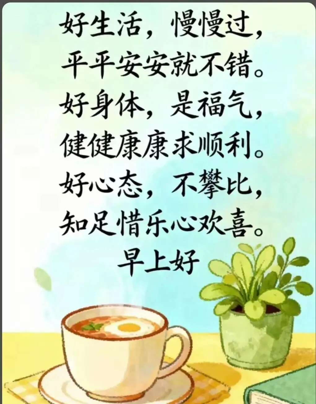 ☀️🌅🙏 🌹 好茶都清淡,好友都思念;好缘都长久,好人都平安!春夏秋冬年年有,只想岁月慢慢走;多把情谊深深留,真心祝愿在心头!愿我们幸福安康到永久!早安吉祥!🌹❤️🙂🤝🌞❤️