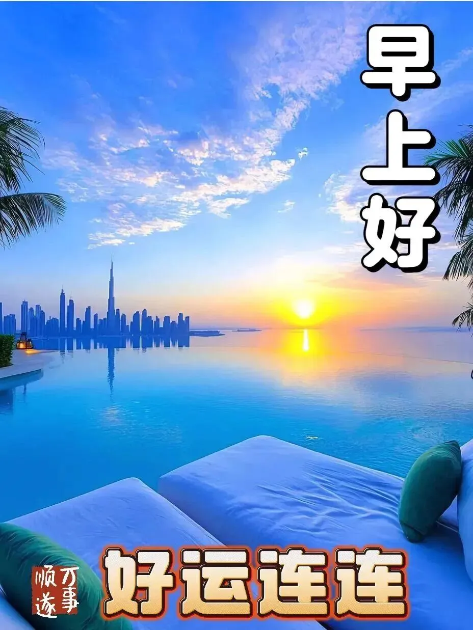 新的一天,新的开始,生活着带微笑,好运自然来到!愿你平安喜乐,万事胜意,未来的每一天里,好运加满,坏运清零,发财被爱,好运常在!祝福我们健康平安每一天,早安吉祥!🌹❤️🙂🤝🌞❤️