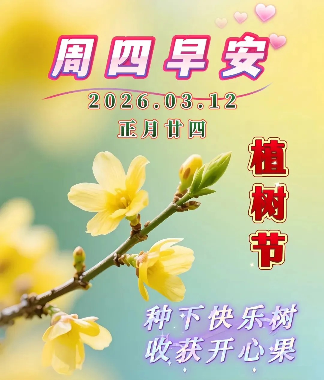 💐植树节,愿你种下快乐树,收获开心果;🌻种下平安树,收获如意果;🌞种下希望树,收获成功果;🌹种下摇钱树,收获好运果!🌸大家周四早安吉祥!💛