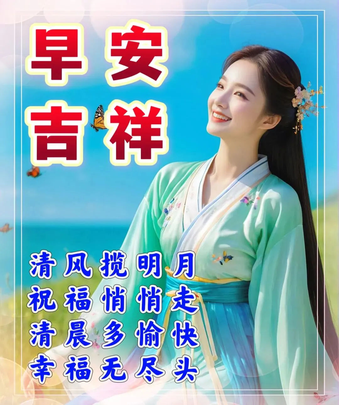💕早安吉祥!好运如春日清风,🍉助您一帆风顺;幸福似阳光温暖,🌺护您岁岁平安。送上祝福,💝愿常伴您左右,🍀早安吉祥,健康快乐!❤