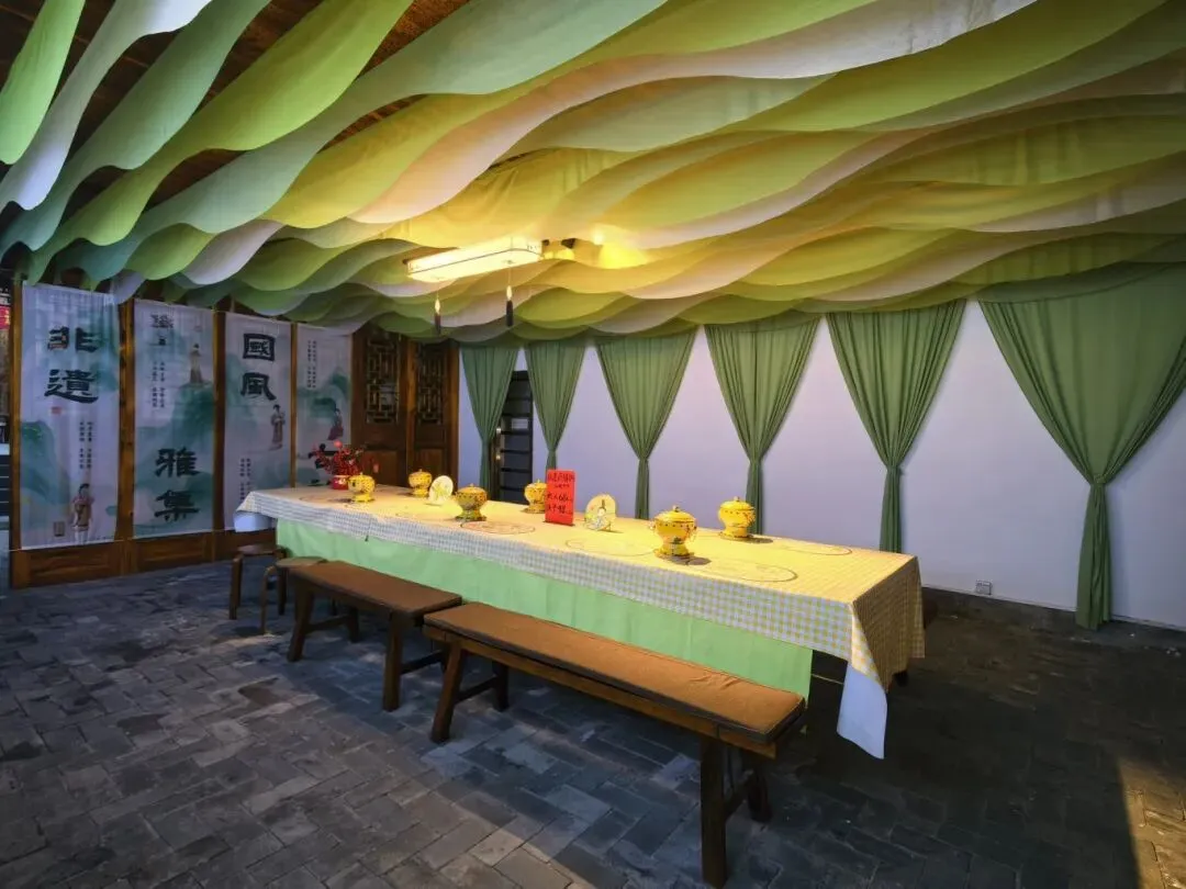 团建游戏 + 下午茶歇 + 非遗手作沙龙 + 特色晚餐(药膳火锅 / 中式围桌二选一)+K 歌古院雅境里,从白天到夜晚,吃喝玩乐一站式体验