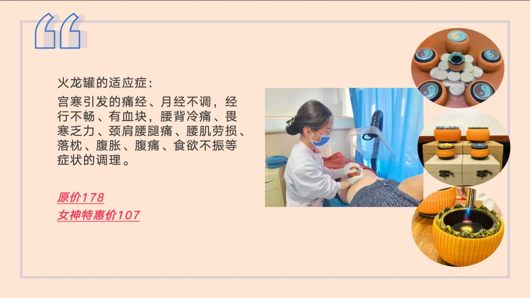 ③葫芦灸(温经散寒,驱寒止痛)12次➕红外线➕中药塌渍12次➕中药灌肠(盆腔炎调理)12次(原价1152,女神节特惠价660)
