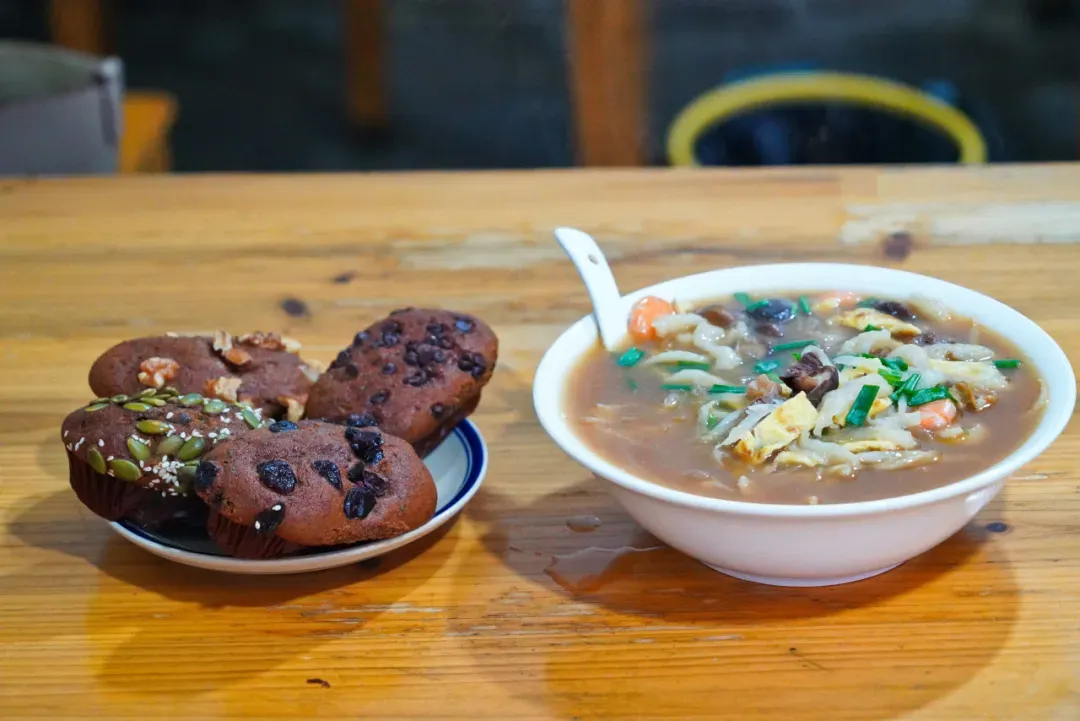 必须打卡的就是家家户户都爱吃的早餐——台州食饼筒和姜汤海鲜粉。