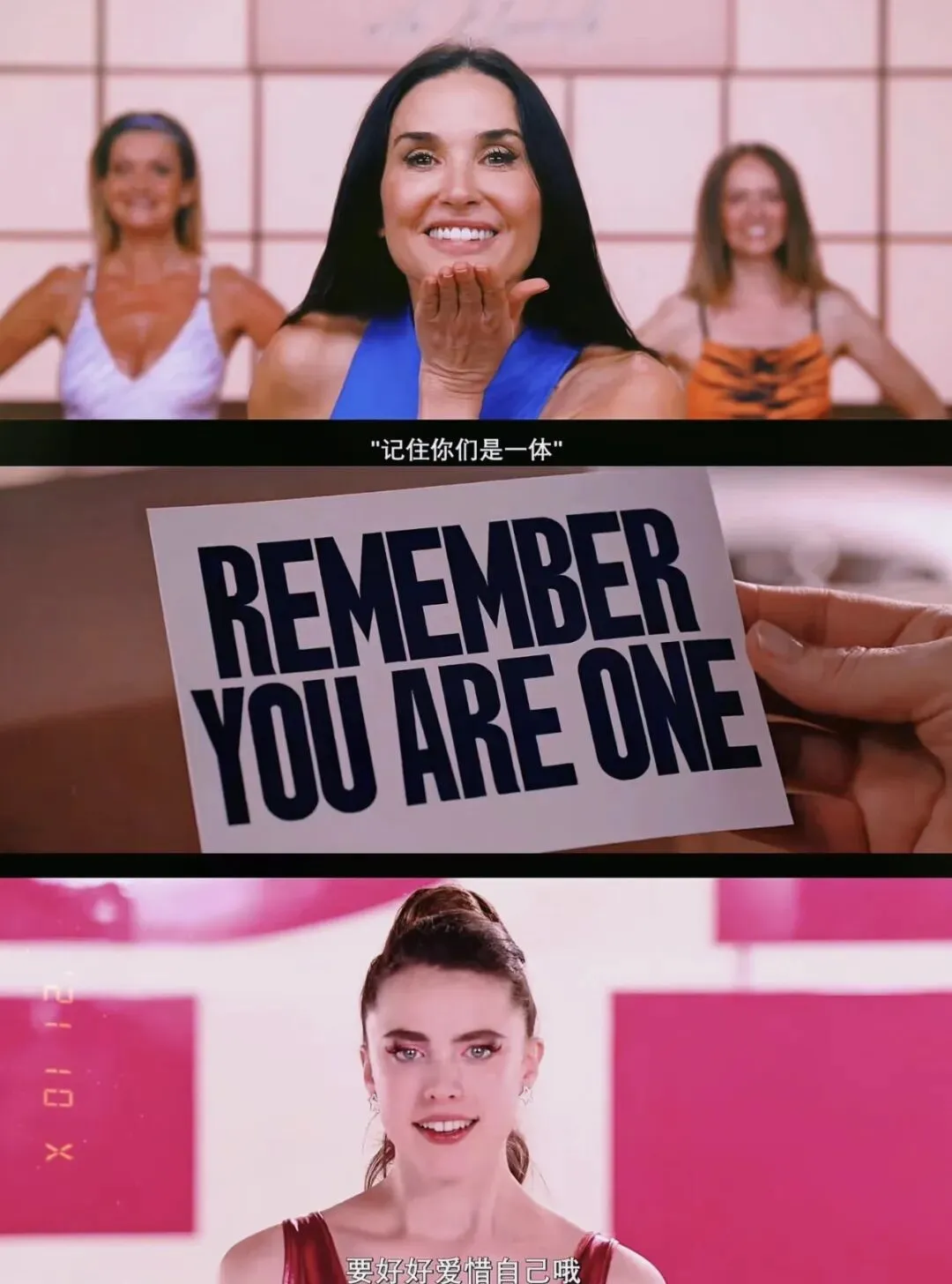《某种物质》讲的是衰老后的顶流女星为维持美貌而打了一种神奇💊,分裂出一个年轻貌美版本的自己,最后却因嫉妒、恨意而美梦坍塌的故事