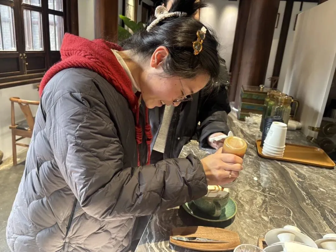 最令人期待的咖啡拉花体验环节,将活动氛围推向高潮,当醇厚的咖啡邂逅绵密的牛奶,教师们手持拉花杯轻晃慢旋,让奶泡与咖啡在杯中完美交融。一个个简约可爱的拉花图案次第绽放,创意与巧思在杯盏间尽显。