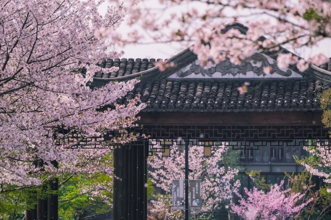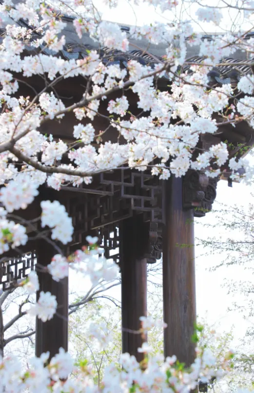 这两句出自明代诗人宋濂,道出了樱花的雅致与渊源——“我们欣赏樱花的风气,源自中国唐代,后传至日本,久而久之,日本的赏樱规模与热闹景象,更胜唐代几分;而樱花盛放之时,漫枝粉艳、缀满枝头,恰似大地披上了一层华丽花毯,既有着牡丹的雍容华贵,又兼具海棠的娇艳动人。”