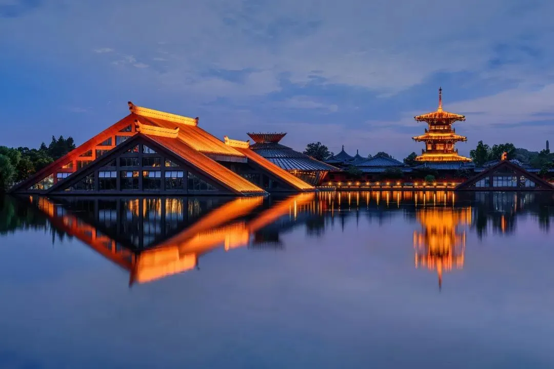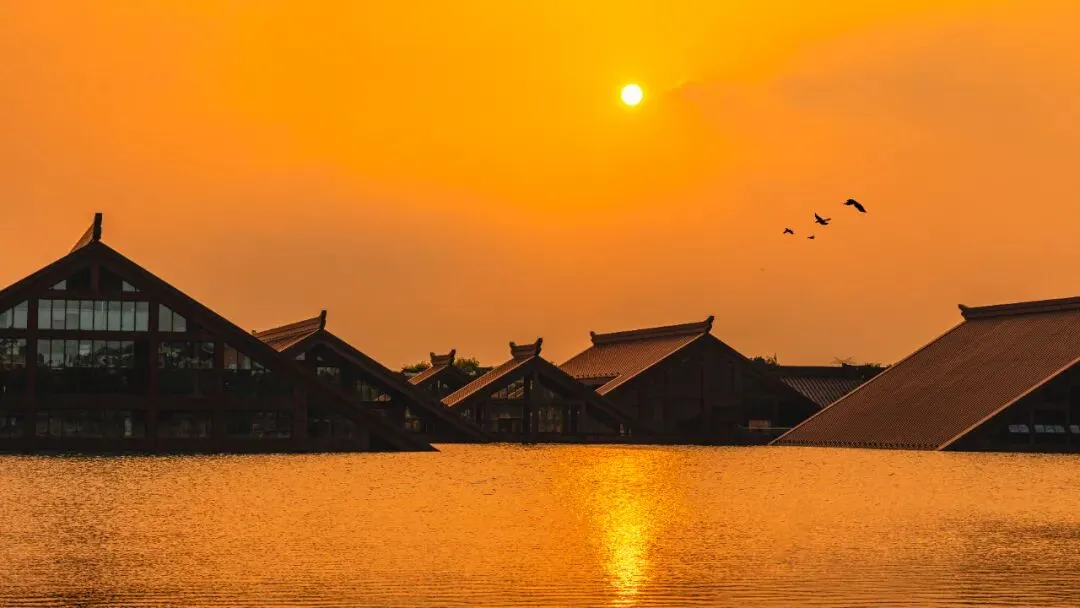这是咱们这次行程的重头戏!夕阳西下的时候,光线特别柔和,金色的余晖洒在广富林的建筑和湖面上,氛围感直接拉满!