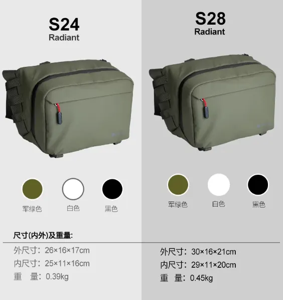 这款包分为两个型号,S24的裸包重量仅390g,S24更适合于微单的1机2镜如果考虑装单反70-200套机,可以选择大一号的S28,裸包重量也仅仅只有450g,S28是专门为单反70-200mm套机设计。
