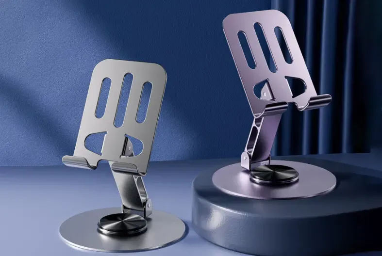 一款性价金属旋转折叠手机支架,手机或者是轻薄的ipad平板都能使用,镂空大孔设计,轻巧,折叠便携;三重防滑,可支撑手机、ipad,适合追剧、学习、边散热边玩游戏,可360°旋转。