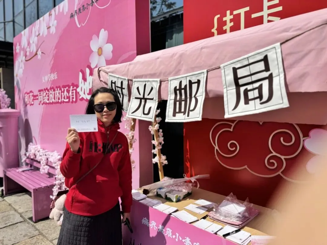 小奢中心全园空间被游客填满,场地空间被活动填满,游客情绪被小奢拉满。游客们纷纷在“和花一同绽放的还有她”主景、玫瑰花树、时光记忆邮局前纷纷合影,拍视频发照片,记录自己最美的年华,为女神们提供满满的情绪价值。