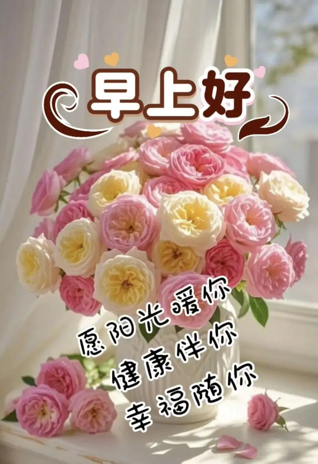 祝福遥寄亲与友,真情无距牵挂久,人生不易缘当惜,新朝喜乐常相守,安康伴岁添福寿,笑看山河皆顺意。早上好!🌹🌞💯🌺🏝️🎉