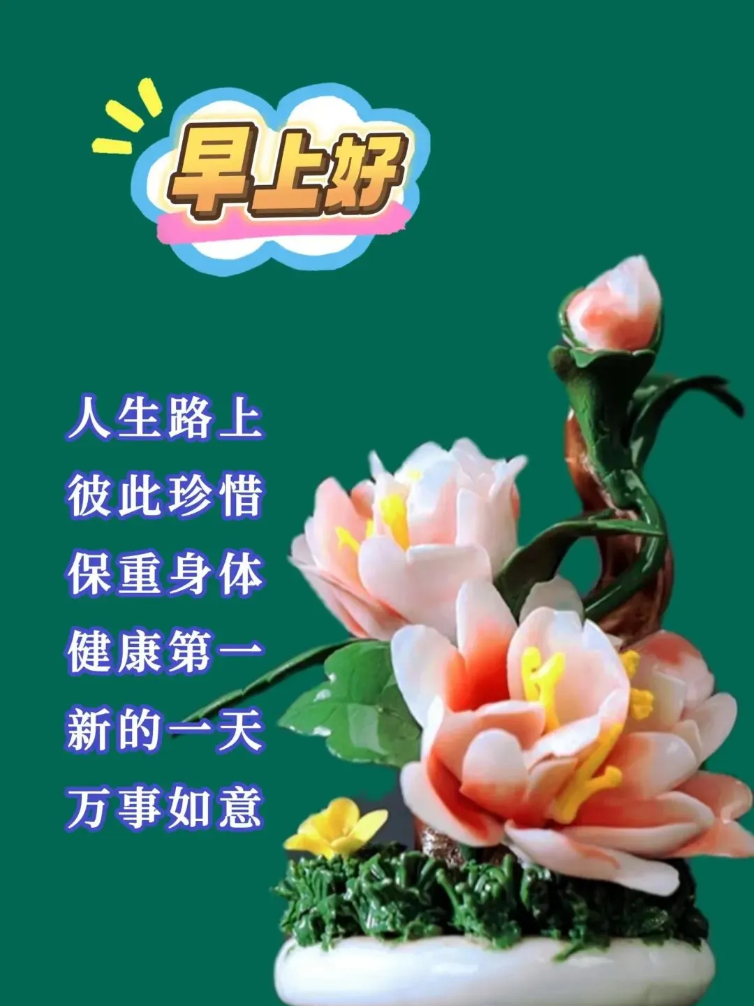 一年四季,冷暖交替,每一天的祝福,准时到达。  一份问候,语轻情长, 甜言蜜语不会说,真心实意不会少。愿平安好运相伴,健康快乐每天 ,早上好~🌹💐🙏🌺💯🎉