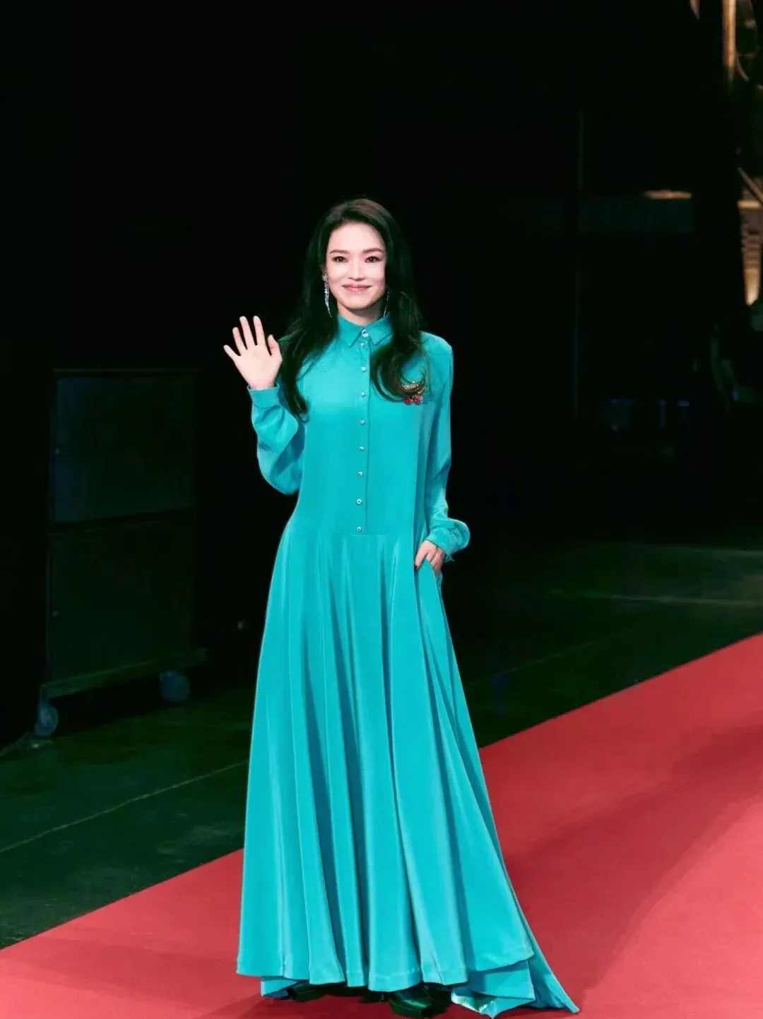 湖蓝色长裙的颜色比较少见,在灯下看上去很干净、微微凉爽。穿在49岁的舒淇身上,肤色看起来明亮了许多,整个人也温柔了很多。和身边有些同事穿着同色的长裙子却显得无精打采完全不同了。那问题到底差在哪里呢?主要看比例是否合适,舒淇这件衣服腰部线条很低,在评论区还有人问:“能不能把腰抬起来?”如果腰线可以提升2-3厘米,或者加一条束紧的皮带提一下气的话,那么腿部显得长一点的感觉就马上解决了。