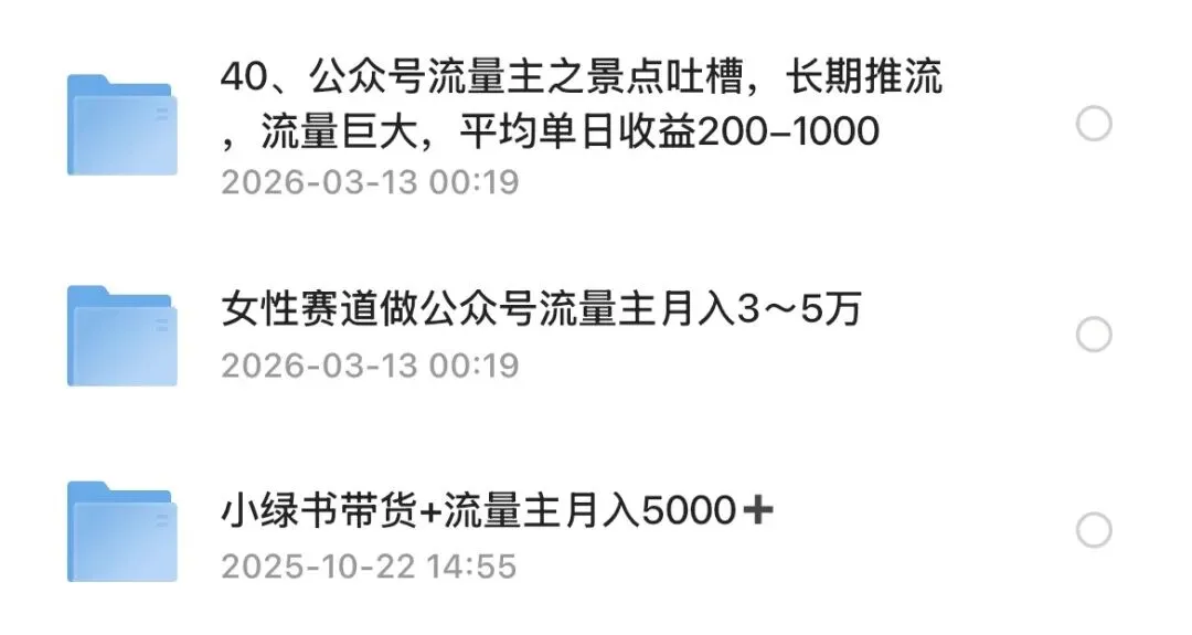 最后再送大家一波福利,我整理了3套公众号流量主实操教程,从起号到变现全覆盖,只要你认可我,找我直接拿,无偿分享。