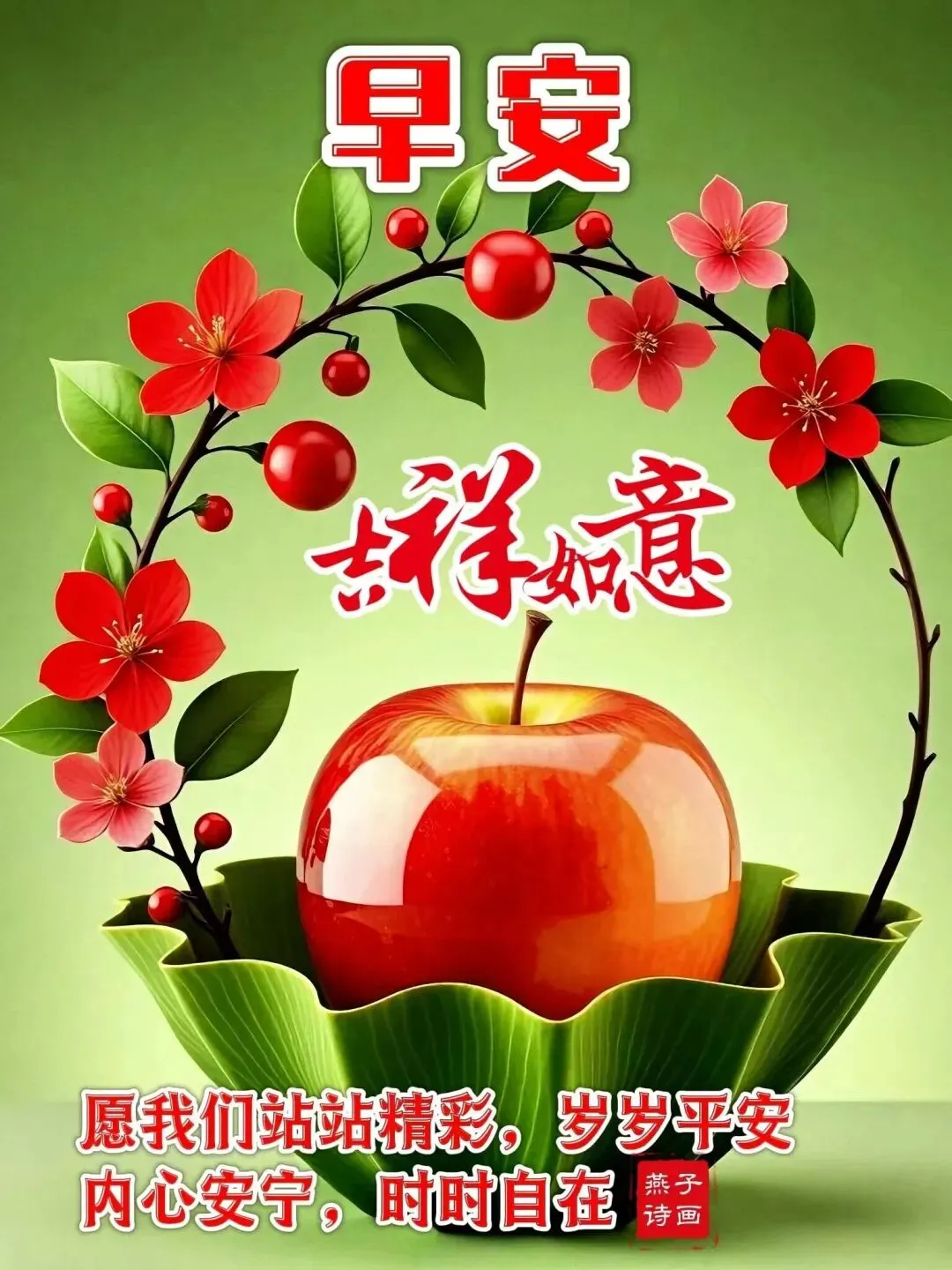 清晨又相见,问候微信传。句句平安话,深深祝福言。彼此多保重,时时好心田。只要健康在,快乐伴身边。早上好!