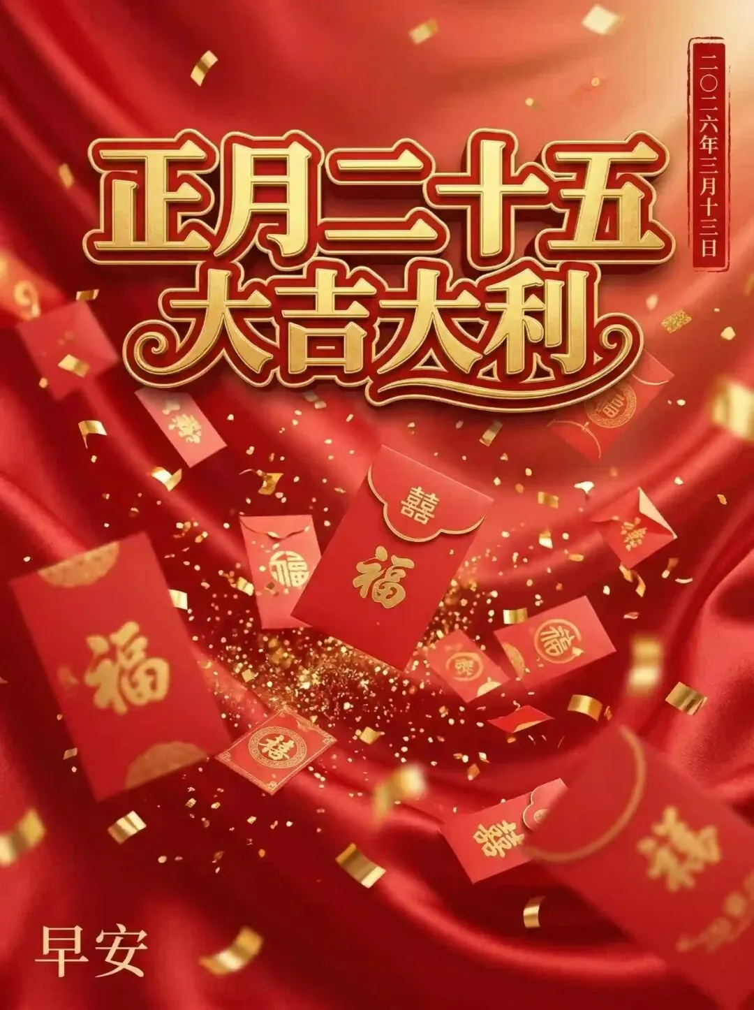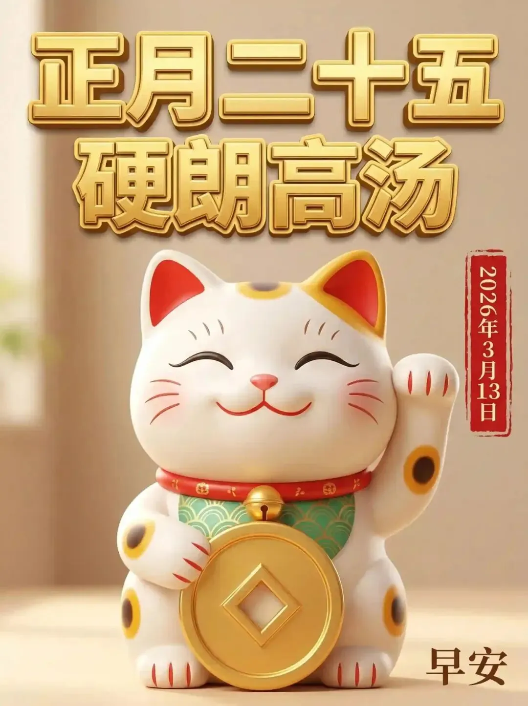 【大吉大利】💯【正月二十五·最后加菜:马年十全大吉饮】饮下这杯满贯暖饮,七道大硬菜全吸收!相亲相爱的一家人,这顿大餐吃得可还满意?硬朗、财运、好运、平稳、开心、和气全进了肚子!2026年咱们这家子注定是最兴旺的一家!正月二十五,早安大吉利!家人们暖暖和和吃好喝好!🌹🎉🧧🙏❤️🔥