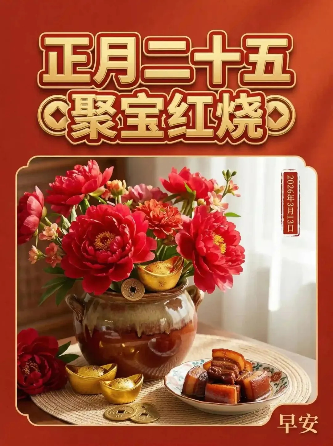 ╭══ 🌅正月二十五 ══╮┊🎉 3月13日 · 星期五┊💖 福气满汉大全席┊🌹 专供相亲相爱群┊🎁 家人趁热吃下肚╰══════════════╯