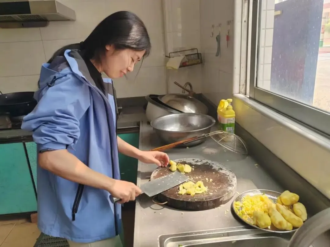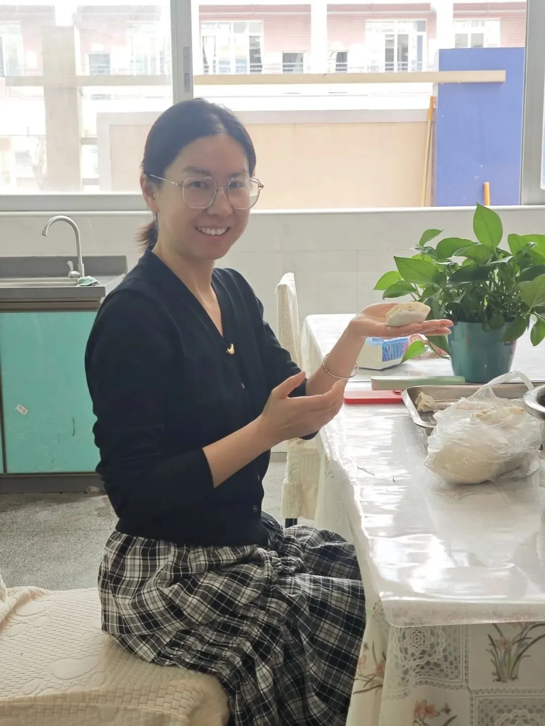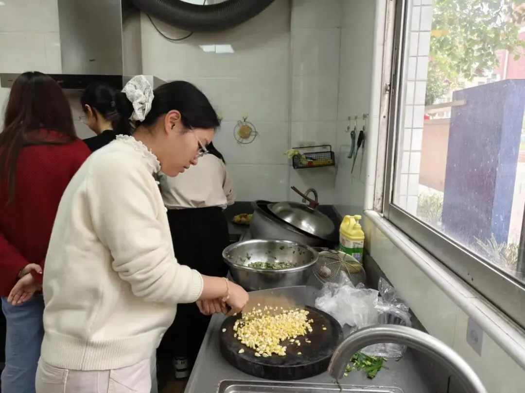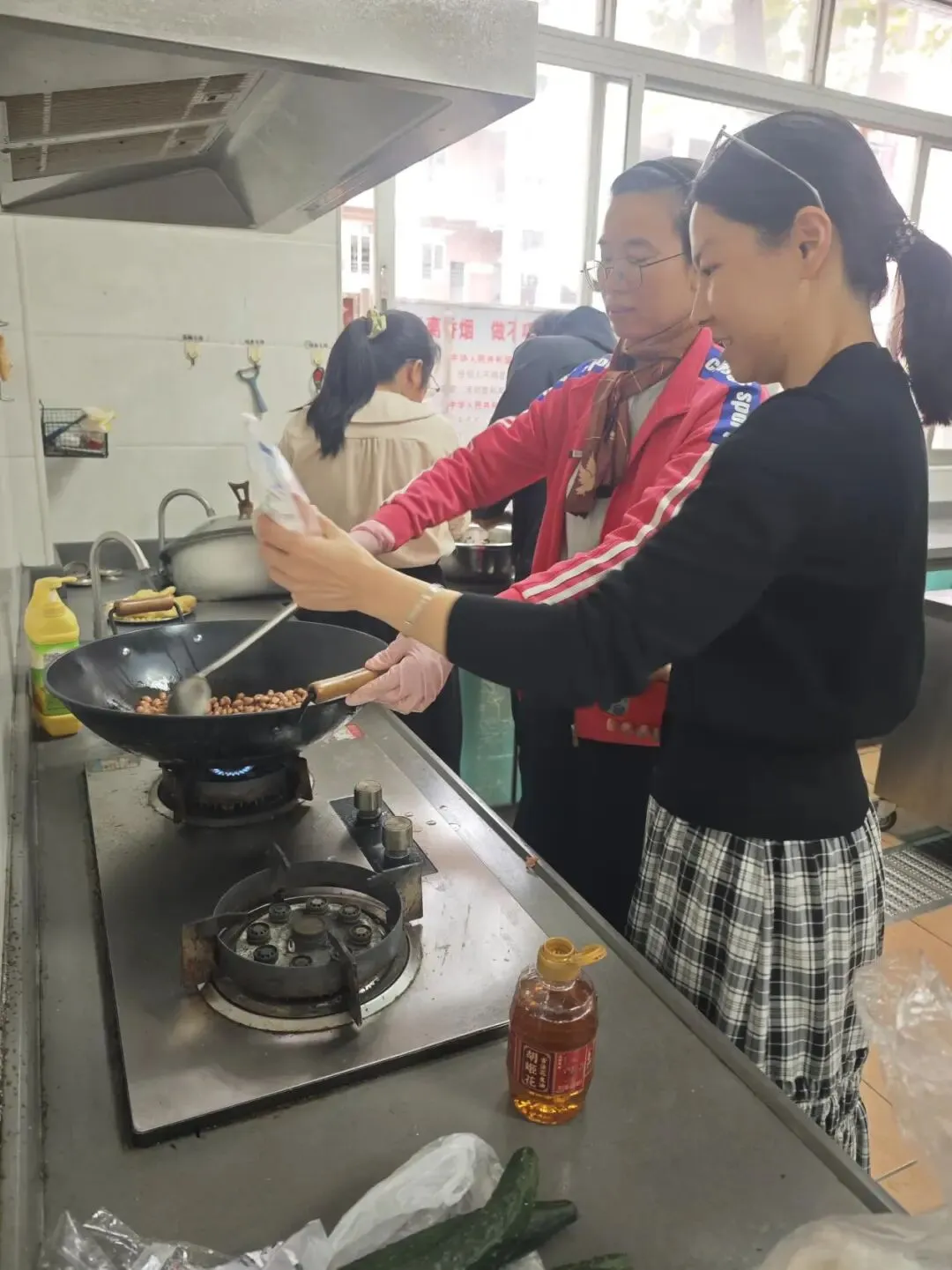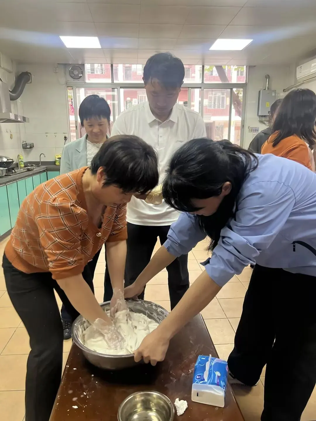 活动中,黄钊杰老师全程热心助力,不辞辛劳奔波于各个小组,尤其在挤粉条环节格外卖力,用实际行动为女教师们送上温暖支持。