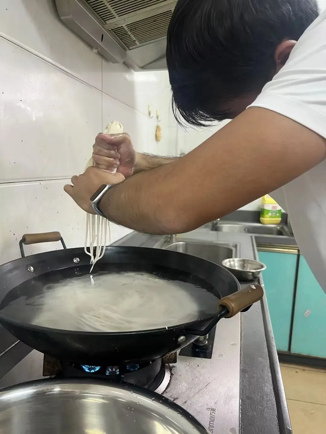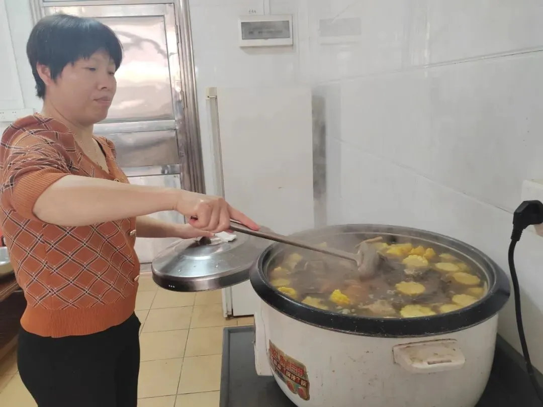 最令人感动的是传统手工濑粉的制作。为还原九佛手工濑粉的地道风味,何碧燕老师带领团队从上午第四节便开始忙碌。从和粉、揉制,到挤粉、烹煮,再到炒馅、煲汤,每一道工序都坚持手工操作、精益求精。大家轮流动手、齐心协力,一碗碗热气腾腾、鲜香浓郁的濑粉新鲜出炉,传统风味在指尖流转,温情在校园蔓延。