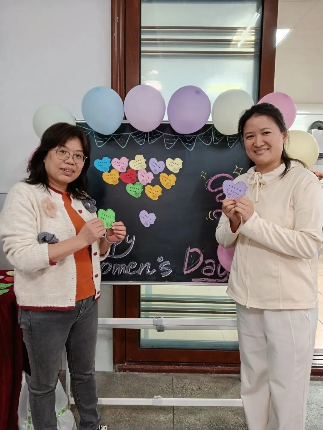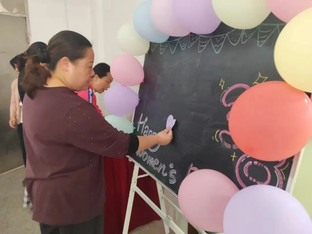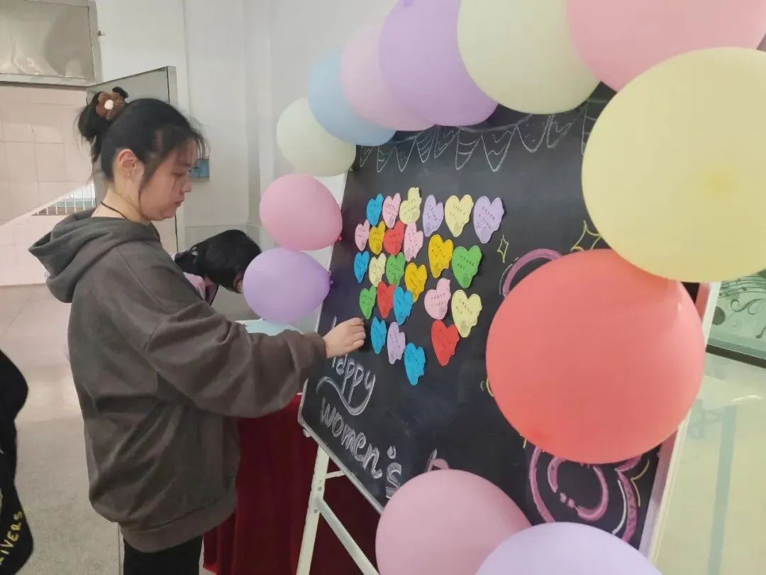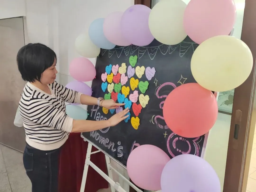本次活动还特别增设“自我关怀签到墙”心理互动环节,由心理老师梁昭弘精心策划组织。女教师们纷纷驻足签到,写下暖心寄语,贴上一张张充满正能量的卡片。轻松温馨的氛围中,大家彼此鼓励、相互温暖,在忙碌的工作之余,学会关注内心、呵护自我,现场洋溢着浓浓的温情与治愈力。