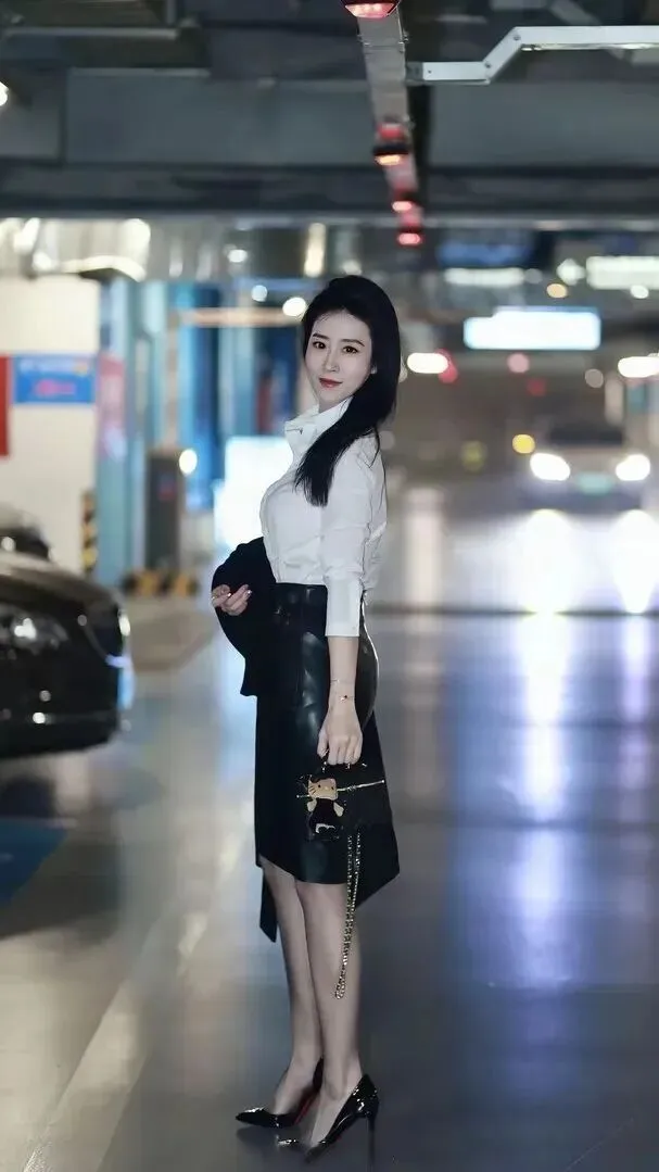 黑皮裙的使用。高腰设计显腿长、包臀款式显瘦,二者一起使用效果更佳。亮面皮质自带高级感,在膝盖以上的透明丝袜+尖头高跟鞋的组合很会女人。