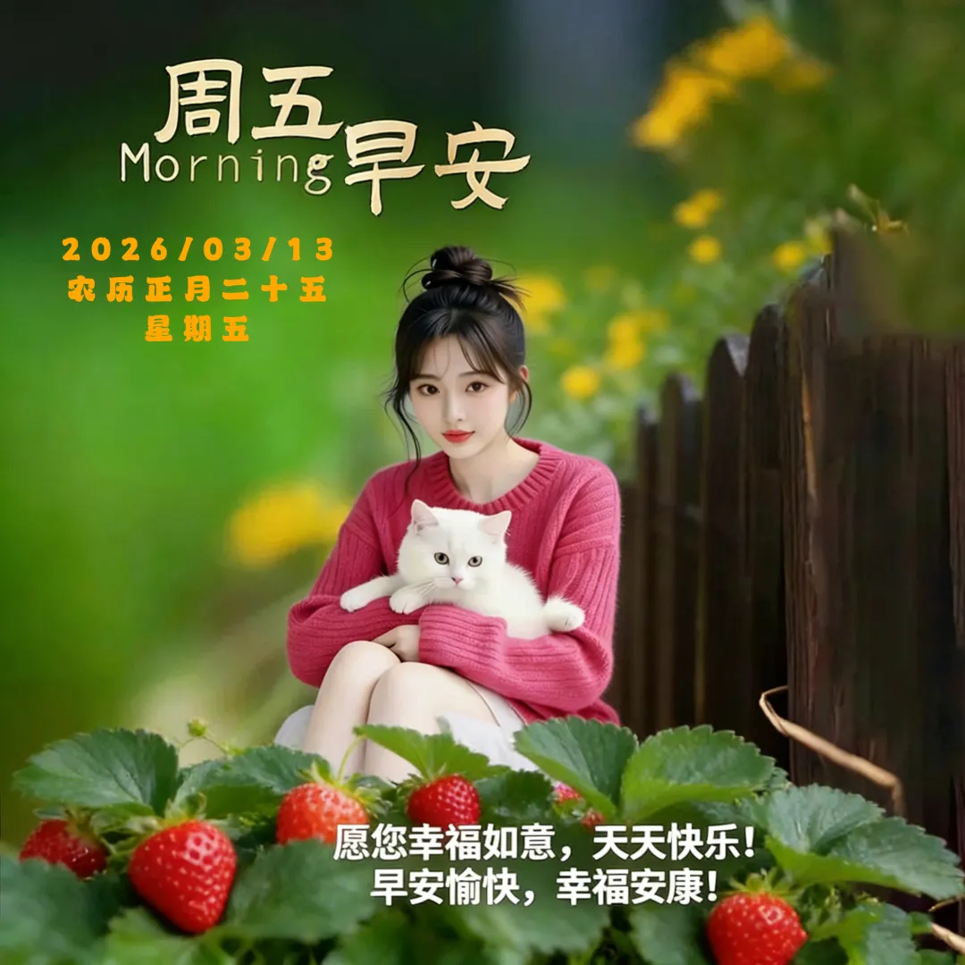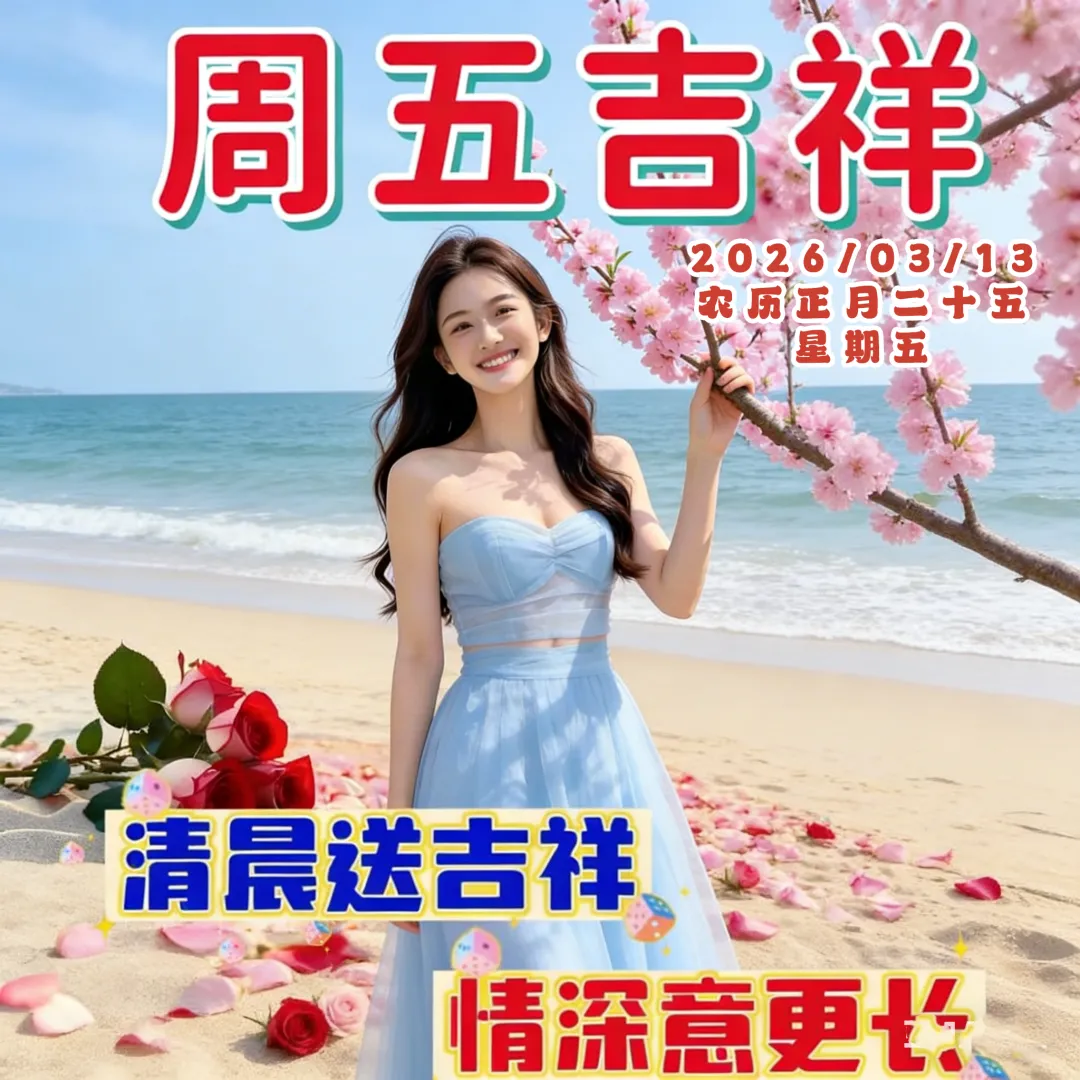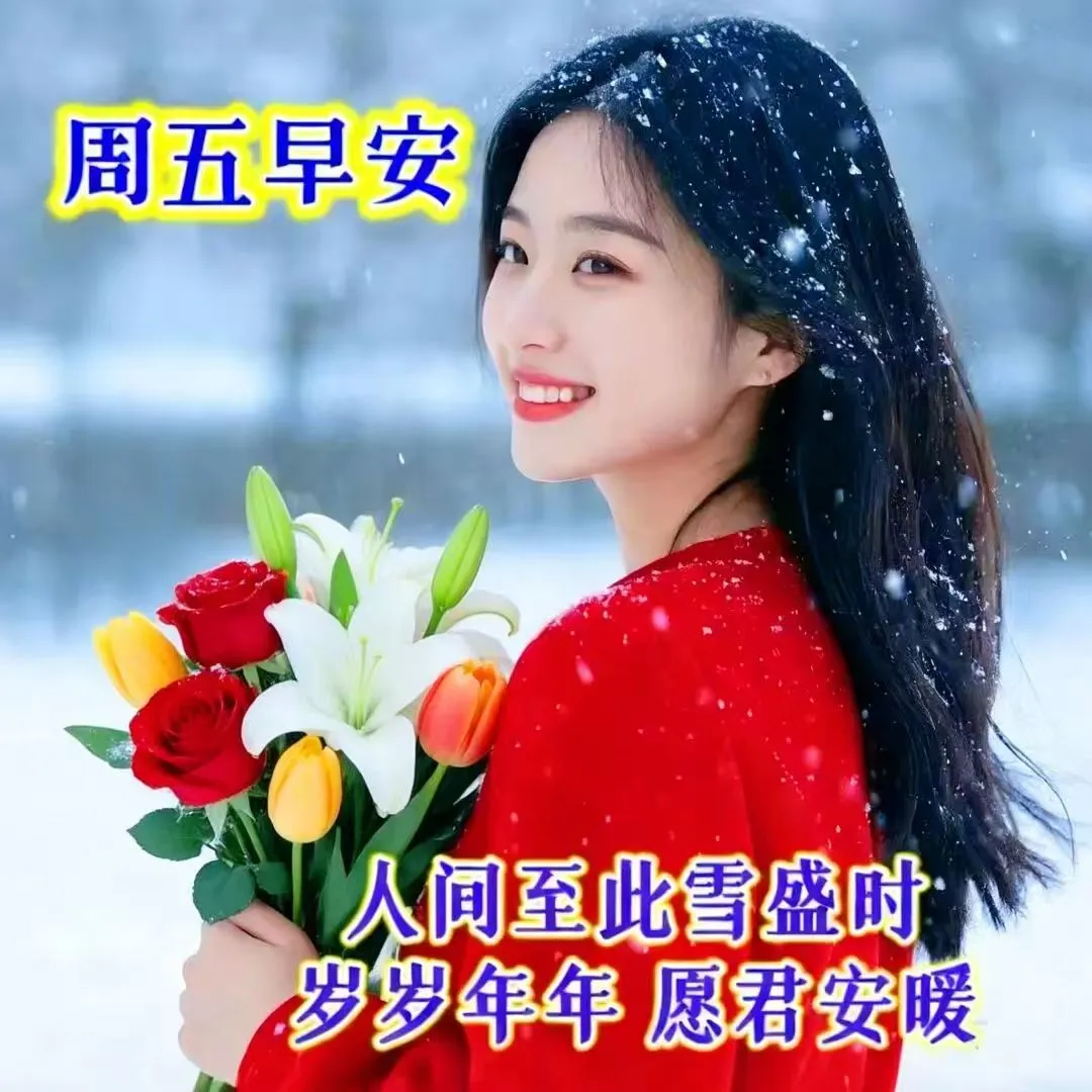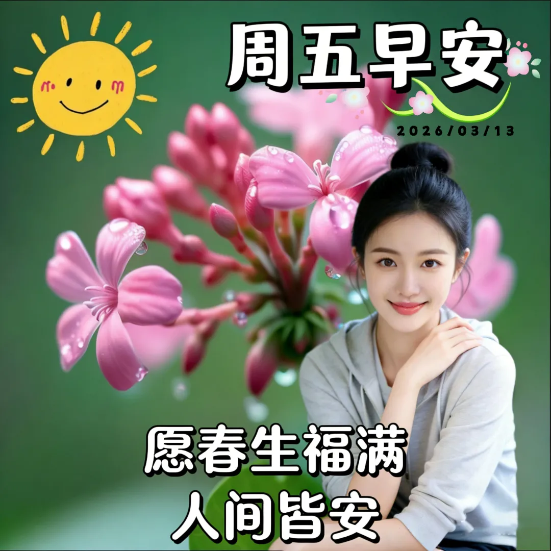 🌈一句早安祝福来,周五吉祥乐开怀;🌷清风送爽精神迈,阳光暖心笑颜开。🌅吉言一句好运在,一生顺利多精彩!🌞各位朋友,早安!🌻