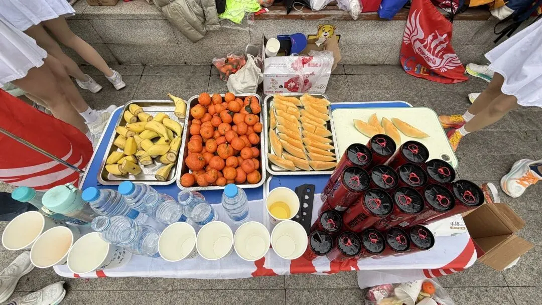 团里提供有水果水饮等运动补给