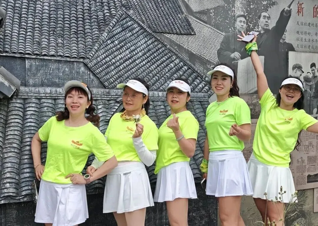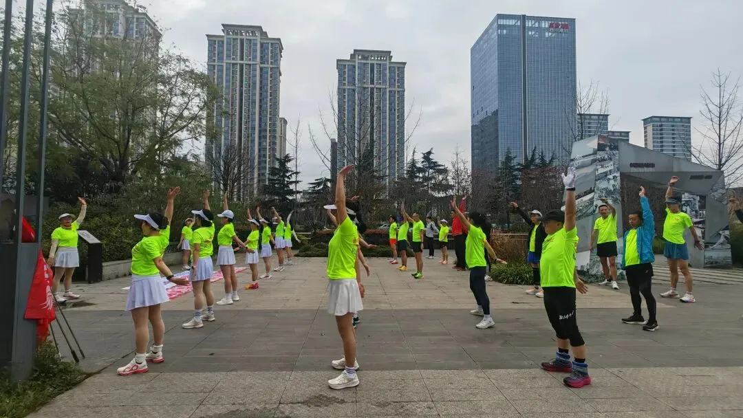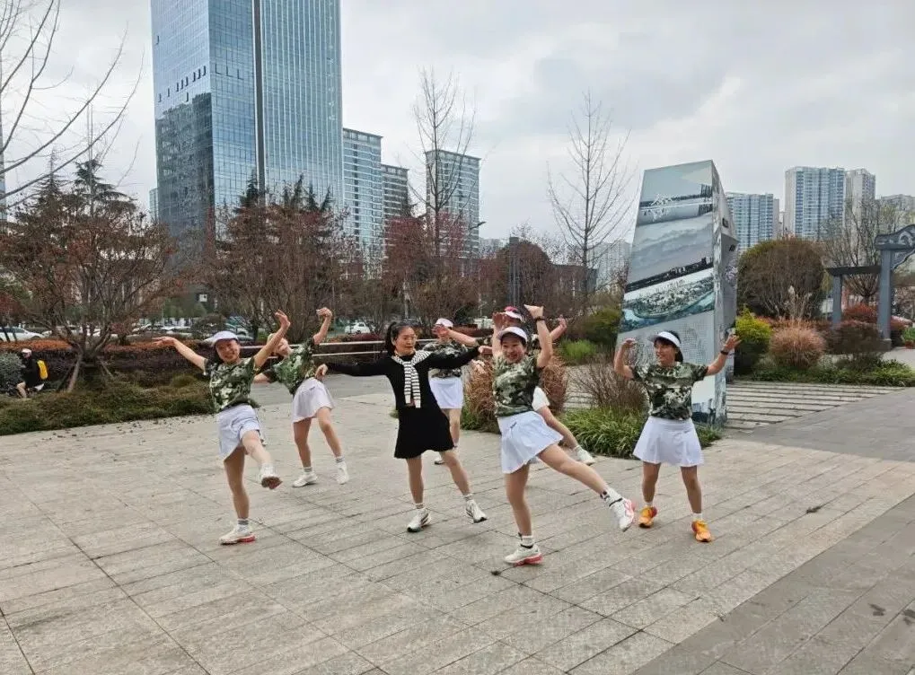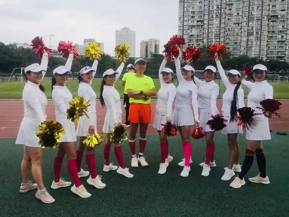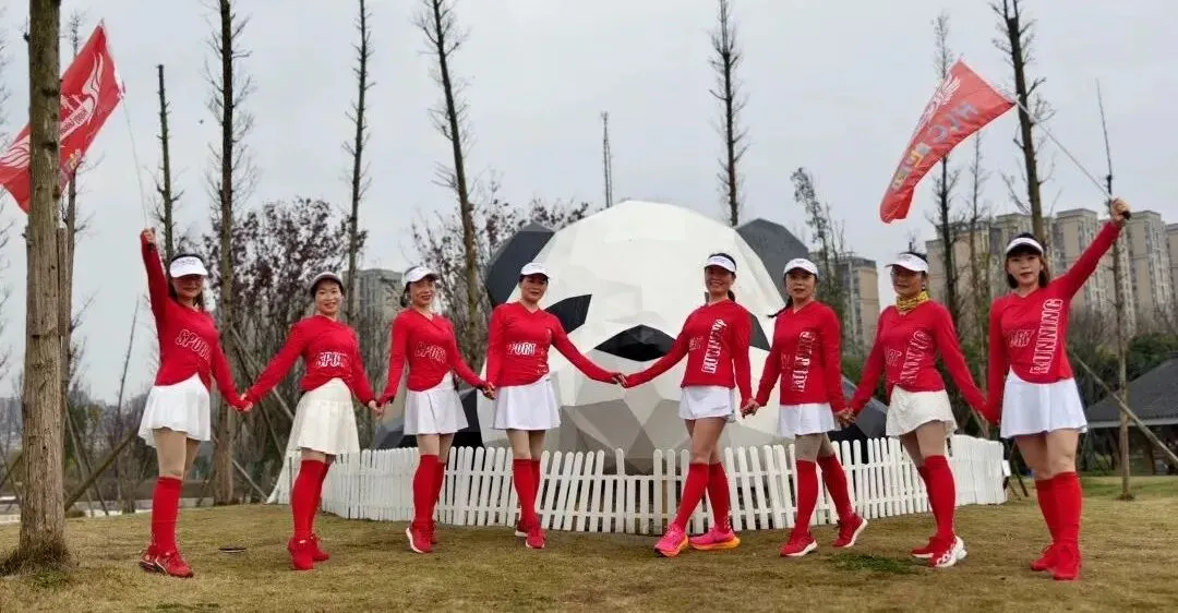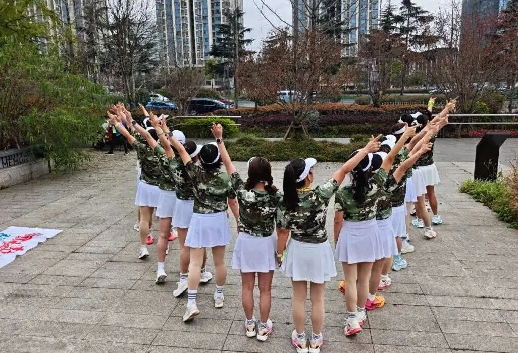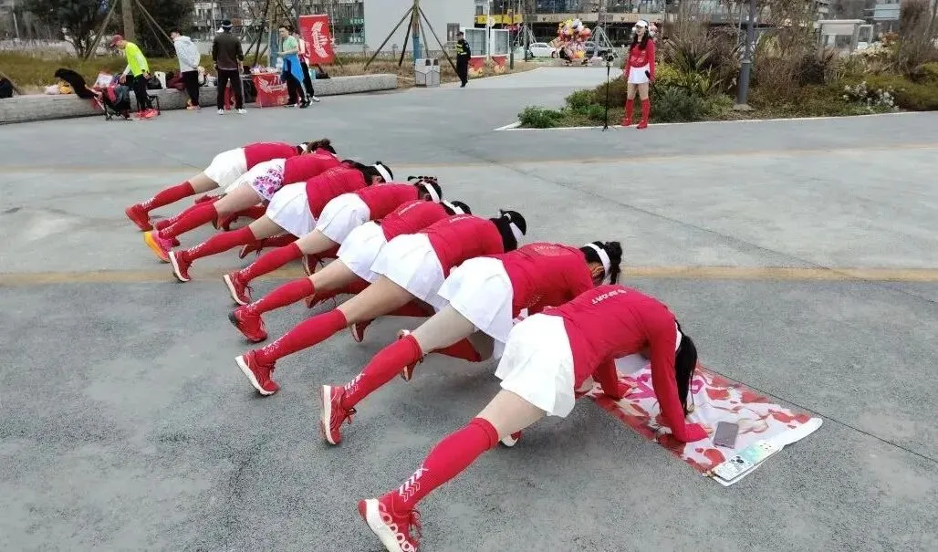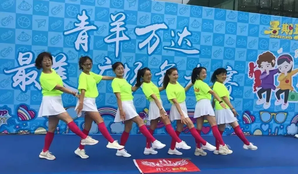 2020年进入疫情期,倡导宅家积极锻炼,女神们积极练健身操,疫情放松时大家出来合练,为更好的展现气质与整体效果,首次统一了白色运动裙作为我团女生团服下衣、后面逐步统一添置女神小分队的运动装备……