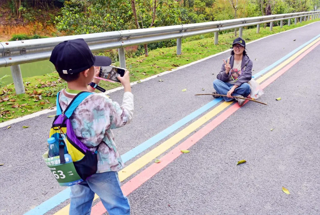 “红山村很有名,这里的风景好好,这次活动组织得也好,志愿者、补水站、救援队,全程护航,很放松”来自越秀区的林阿姨这样点赞活动主办方。到达徒步终点,她开心地领取了一块定制纪念奖牌,又自豪地在合影墙前留下自己挑战成功的瞬间。