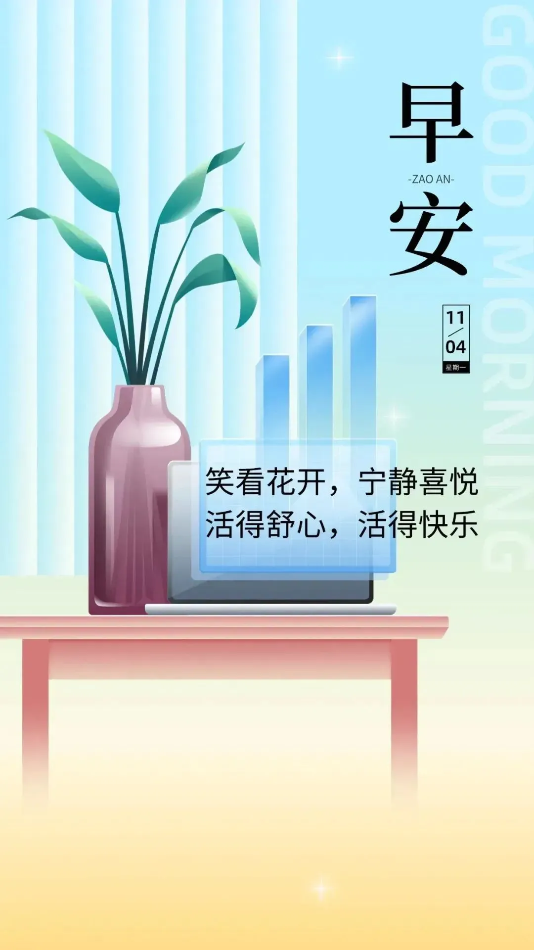 3,万物复苏,欢声笑语,清晨的阳光温暖且明媚,为你的新一天带来快乐的信息。愿你尽情享受新的一天,一切都顺利,一切都美好。早安,我的朋友,愿你的一天都精彩纷呈。