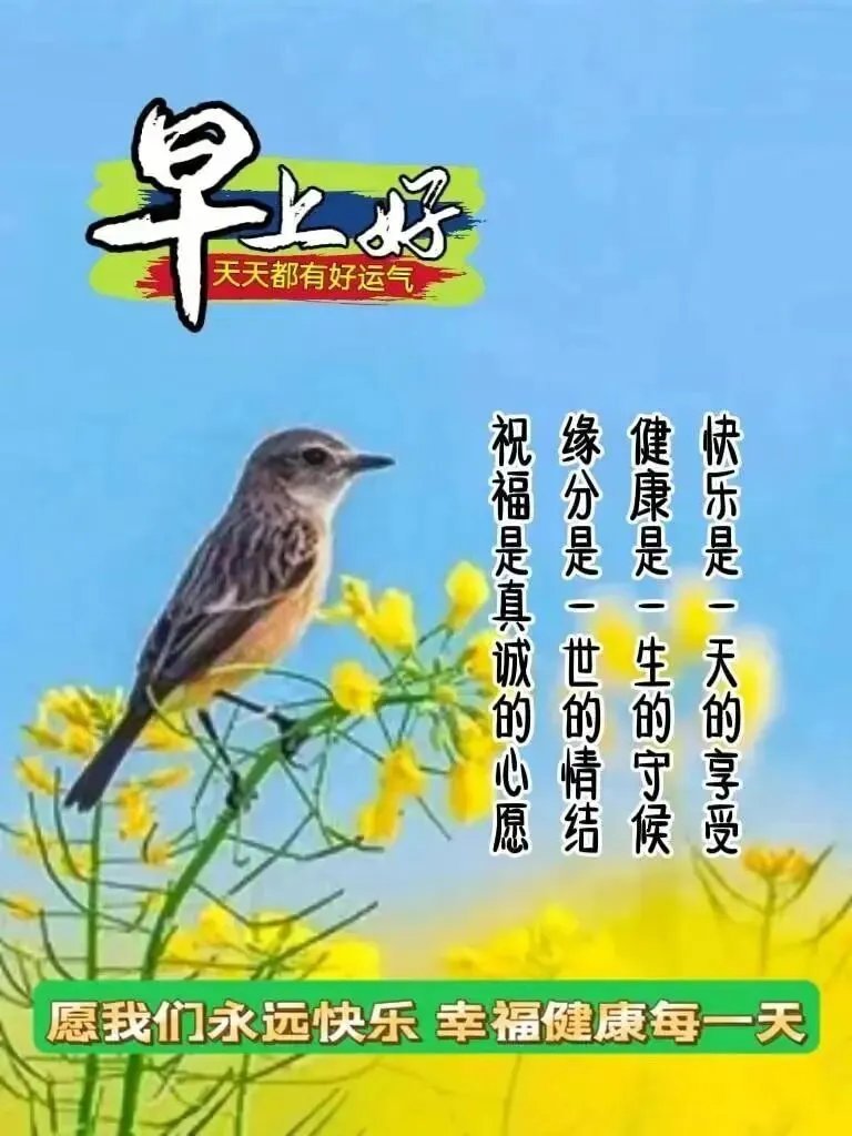 24,早晨鸟儿唱和声,阳光照射满庭院。朋友,早安喔,请笑一笑,迎接新的一天好。愿快乐伴你身旁,事事顺利在心上。早上好,愿你超好!