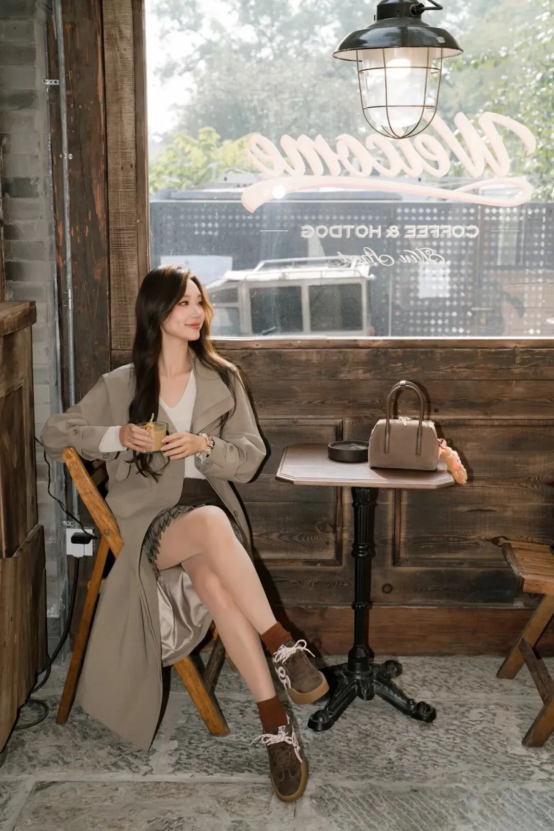 9 组浅灰风衣复古咖啡馆写真姿势|从石阶到木窗,拿捏松弛氛围感