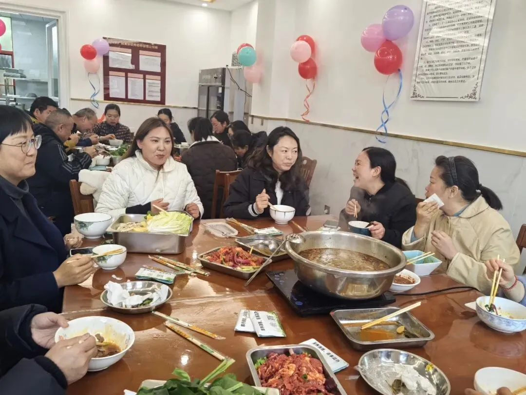 再看德龙陵园公司,同事们有的忙着把食堂用彩色气球、丝带精心布置得温馨又喜庆,处处洋溢着节日的氛围;有的忙着拣菜,有的忙着洗菜,有的则忙着切配,有条不紊地准备着火锅盛宴。同事们边忙活着,边聊着家常,偶尔传来一阵清脆的笑声,整个食堂里弥漫着新鲜食材的清香和热闹的气息。大家围坐在一起,一起品尝火锅美味,阵阵暖意瞬间驱散了春日的微寒。随后,大家前往附近的“小长城”景点打卡参观,一边赏花一边游玩,尽情放松。尽管下着小雨,也丝毫不减大家的兴致。