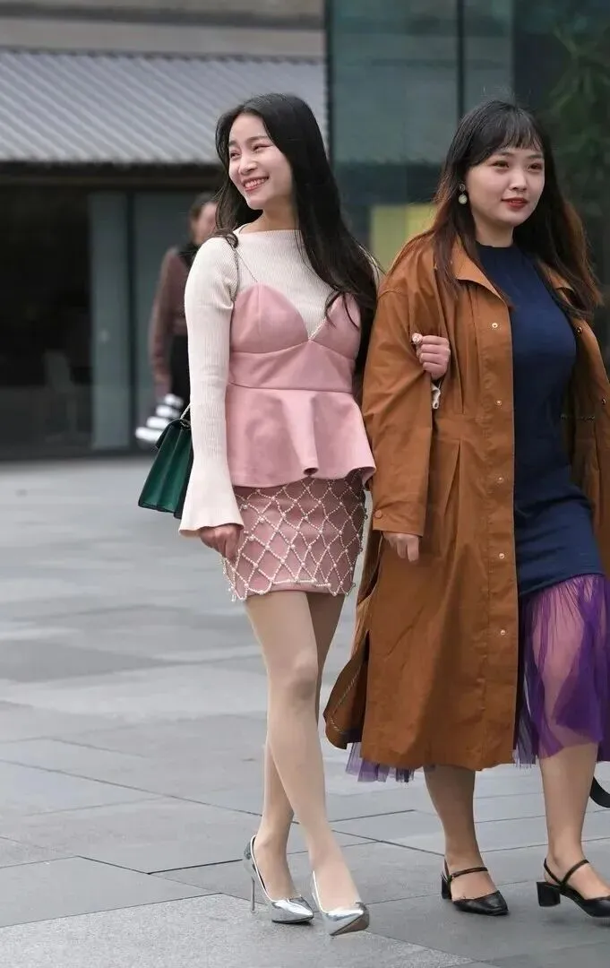 风衣宽松版型,遮盖效果好。用少许的硬朗感把裙子的柔和与刚毅之间的关系维持起来。两人手挽手走路的姿势既温馨又时尚,闺蜜穿搭就是应该用这样的方式玩。