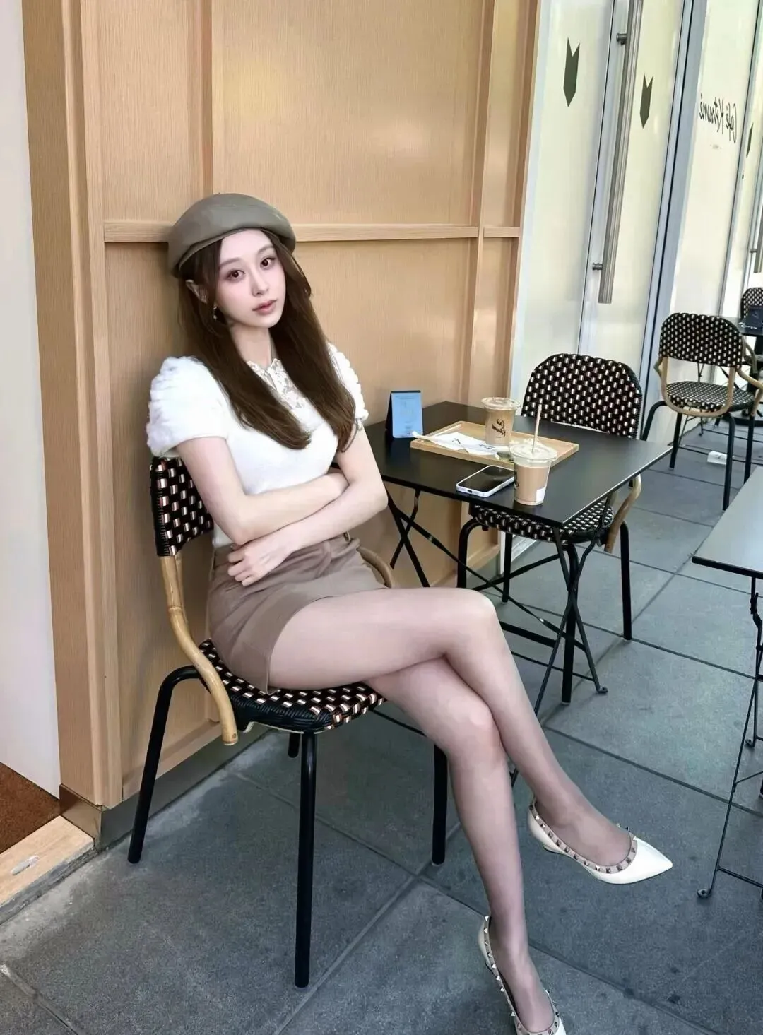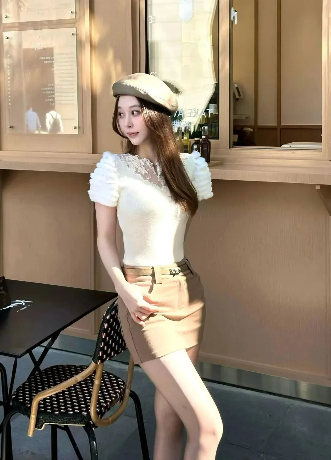 贝雷帽带毛茸茸的上衣,很活泼。同色系腰带一扎,腰线分明,身材比例变好。咖啡店门前往外面看,有种复古柔和的氛围扑面而来。该组合非常简单易学,是时尚爱好者必须拥有的一项技巧,也是给秋日带来慵懒感的最佳利器,值得所有美妆达人们收藏!