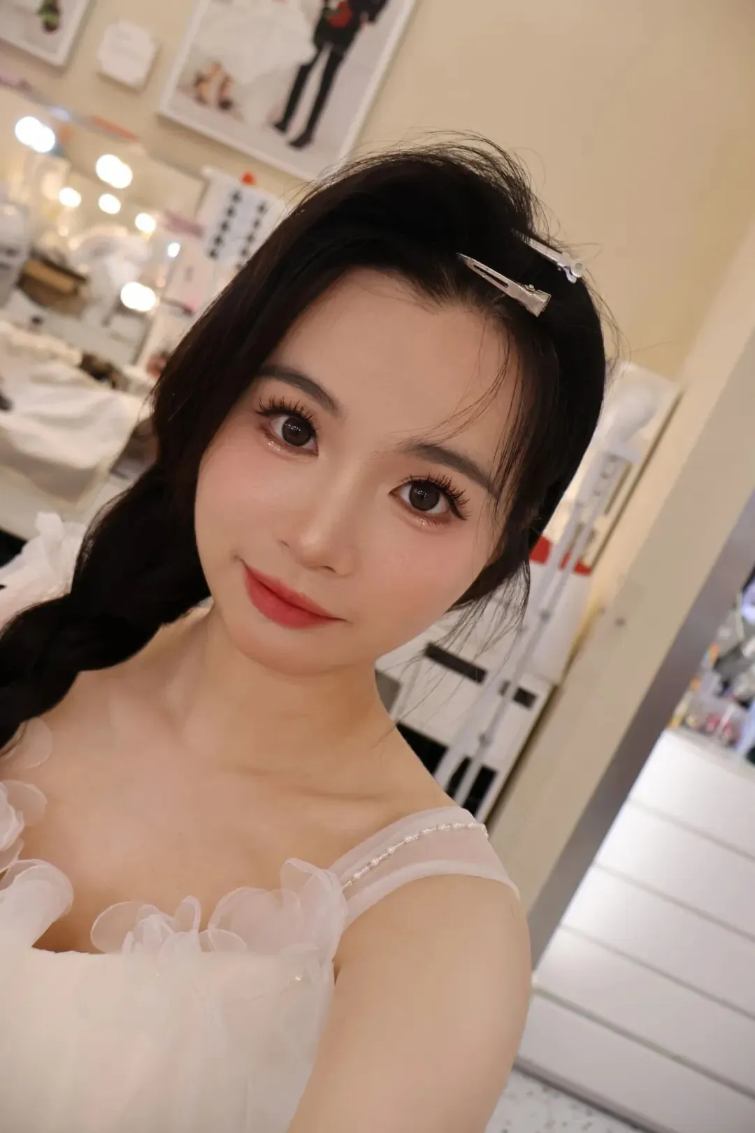 第三步:到店拍摄,近视眼务必准备隐形眼镜/美瞳,大部分吊带衣服有胸垫,不放心可以自备胸贴,记得提前一天洗头便于做发型,拍摄时棚内只有自己和摄影师,可以跟随摄影师的指导尽量多的做动作,换不同姿势出片,选片时虽然纠结,但是拍摄本身就是很好的体验了,留下2张精修照足矣!