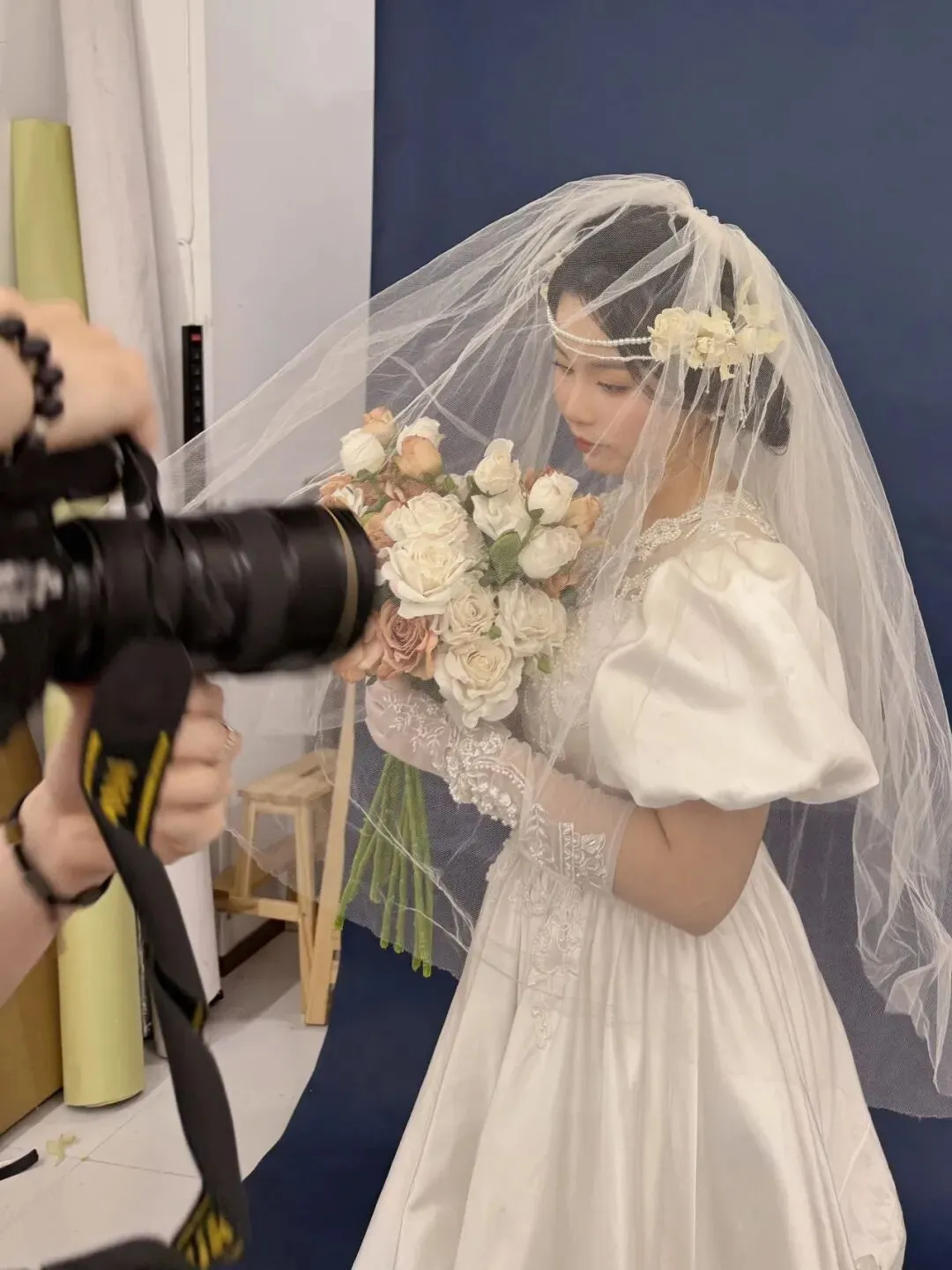 在摄影棚也可以拍花絮,但是现在不让带相机进场了,用手机抓拍一些也不尽人意,大概是光照不好,只能拍些“意识流”的。