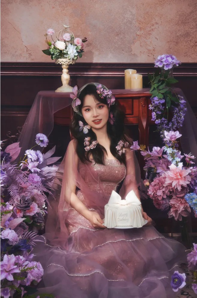 当作生日照去拍的,梁宝很喜欢紫色系,碰巧这组上新,立刻就决定去拍啦!