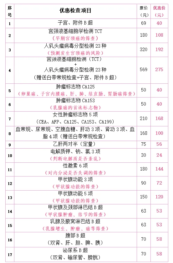 免费妇检项目